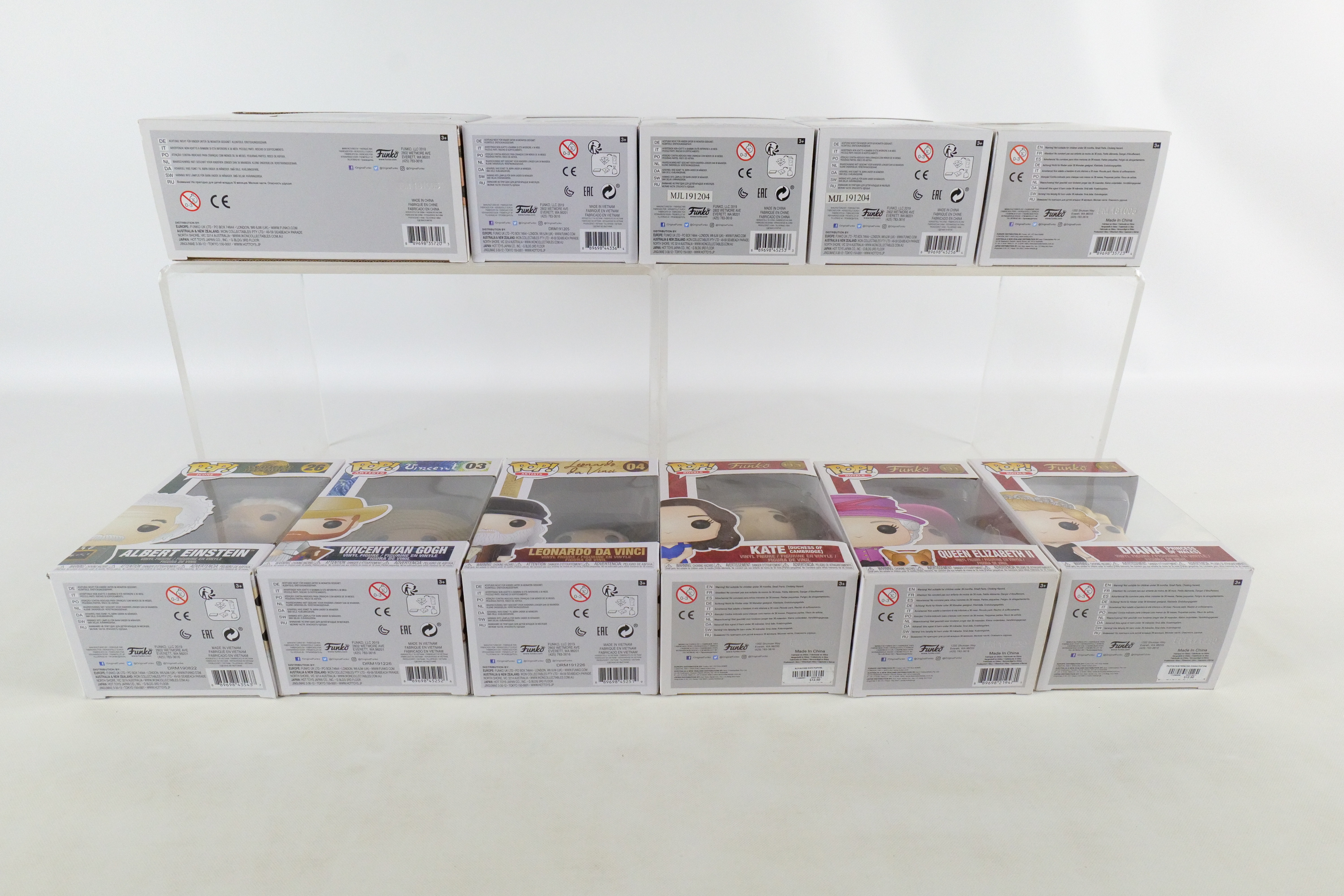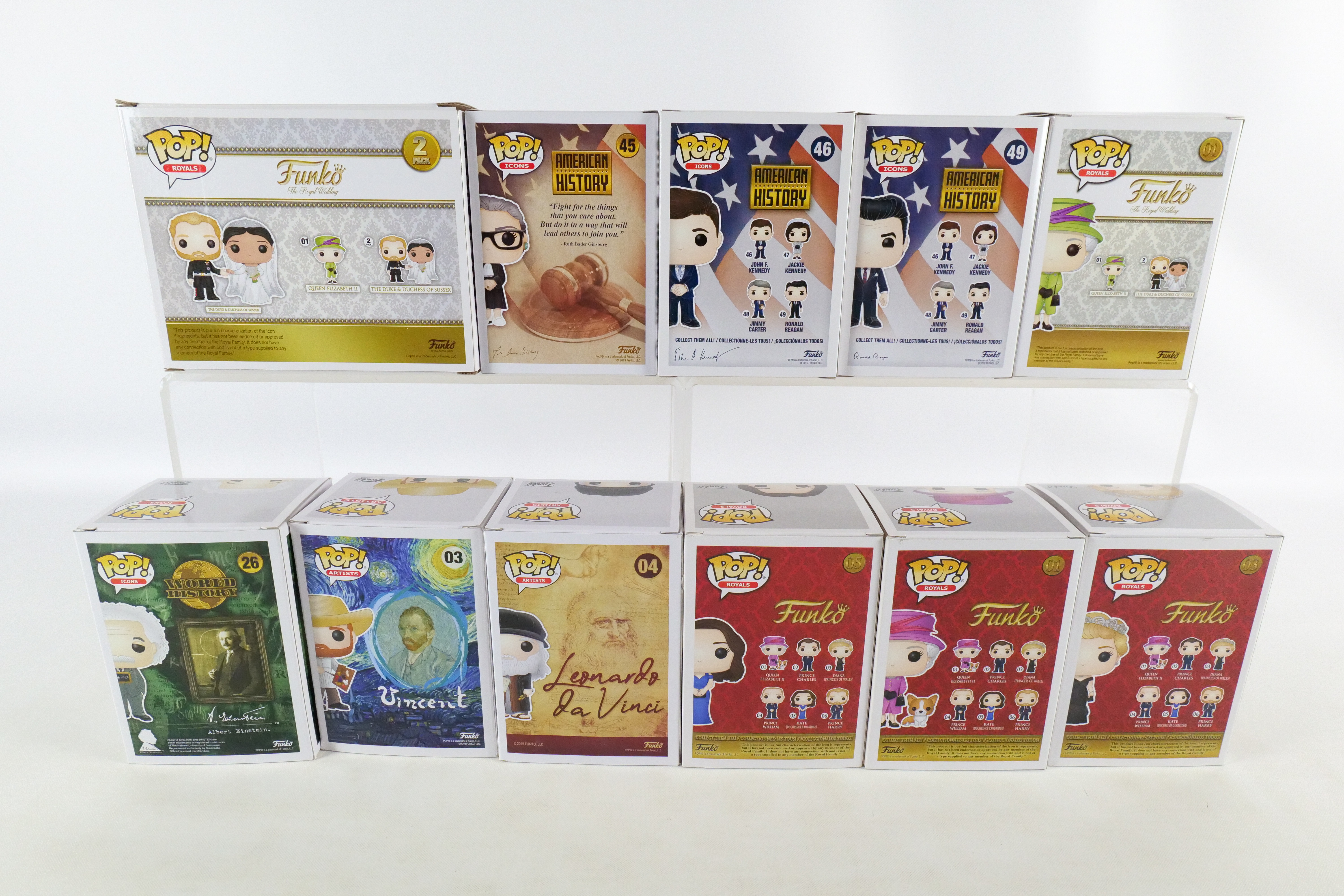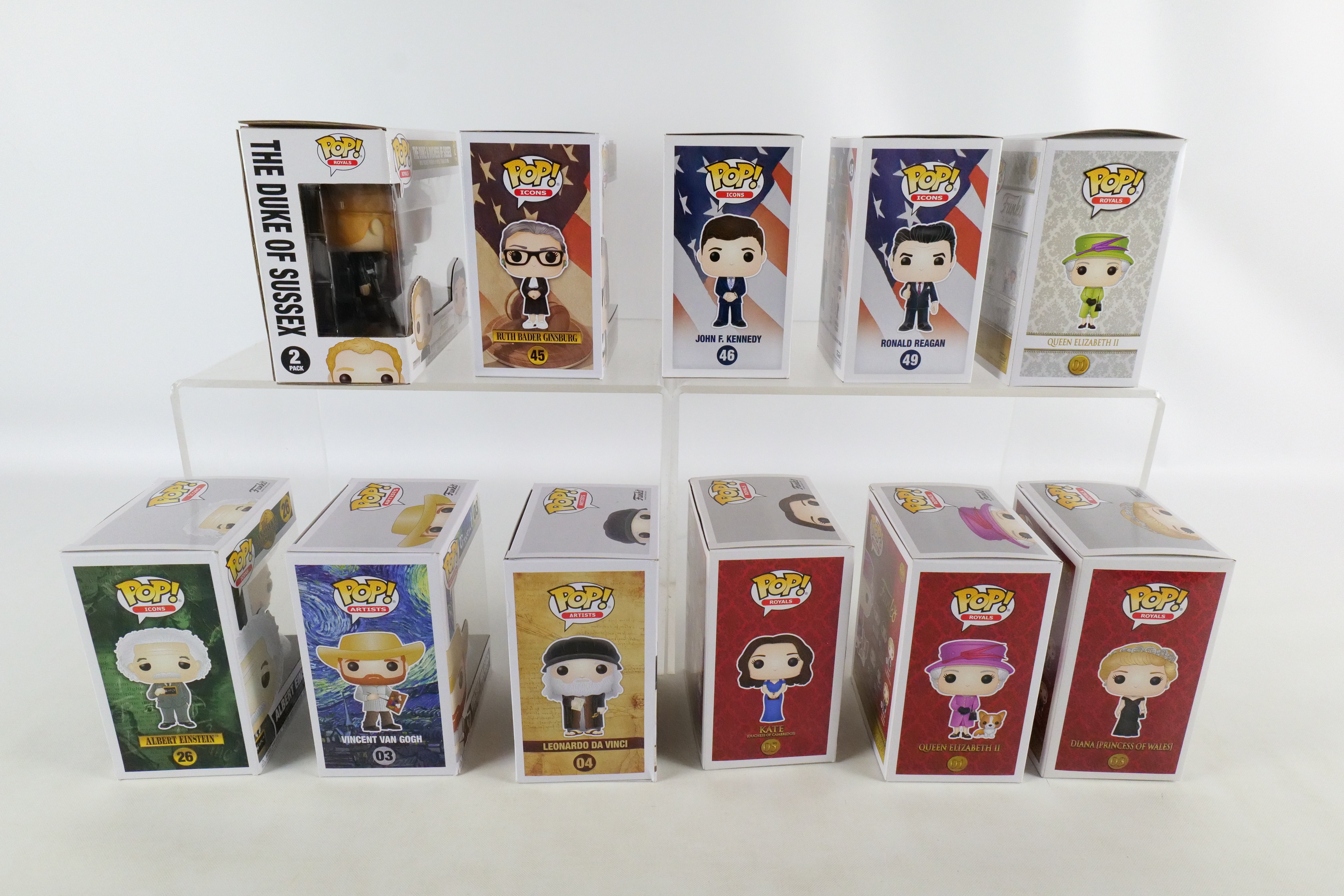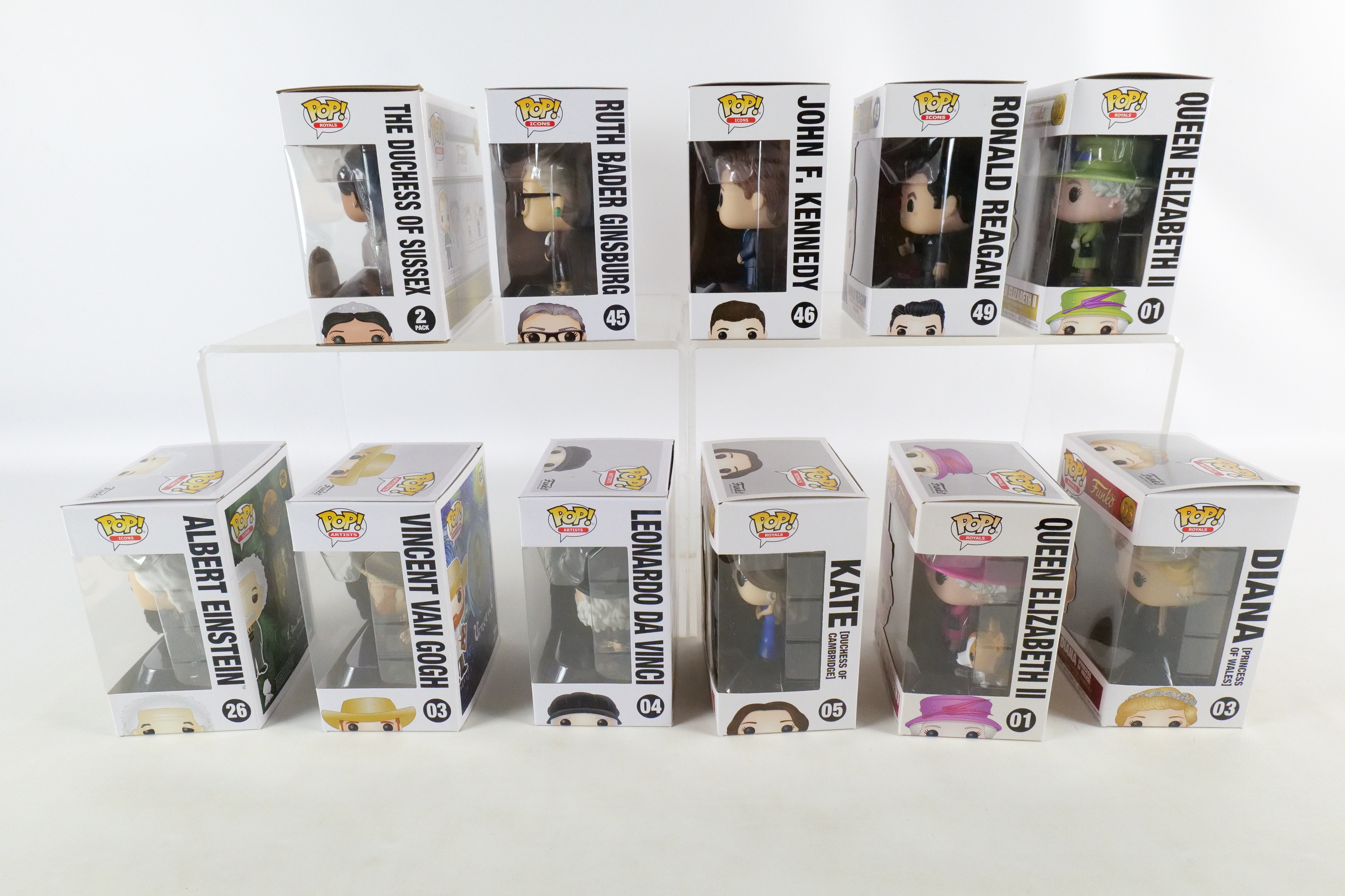 Lot of 11 Funko Pops. Including Royals: Queen Elizabeth #01 – Red and Green, Diana (Princess of Wales) #03, Kate (Duchess of Cambridge) #05 and The Duke and Duchess of Sussex 2 Pack, American History: Ruth Bader Ginsburg #45, John F. Kennedy #46, Ronald Reagan #49, World History: Albert Einstein #26, Vincent Van Gogh #03 and Leonardo Di Vinci #04. All pops are in new condition and come in the original boxes. The boxes may have slight wear/slight creasing/dings from storage. All invoices must be paid within 24 hours of the sale. We offer multiple shipping options please read the shipping terms to understand your options. We also offer Pick-Ups Friday, Saturday, and Monday immediately following the sale. BY APPOINTMENT ONLY.