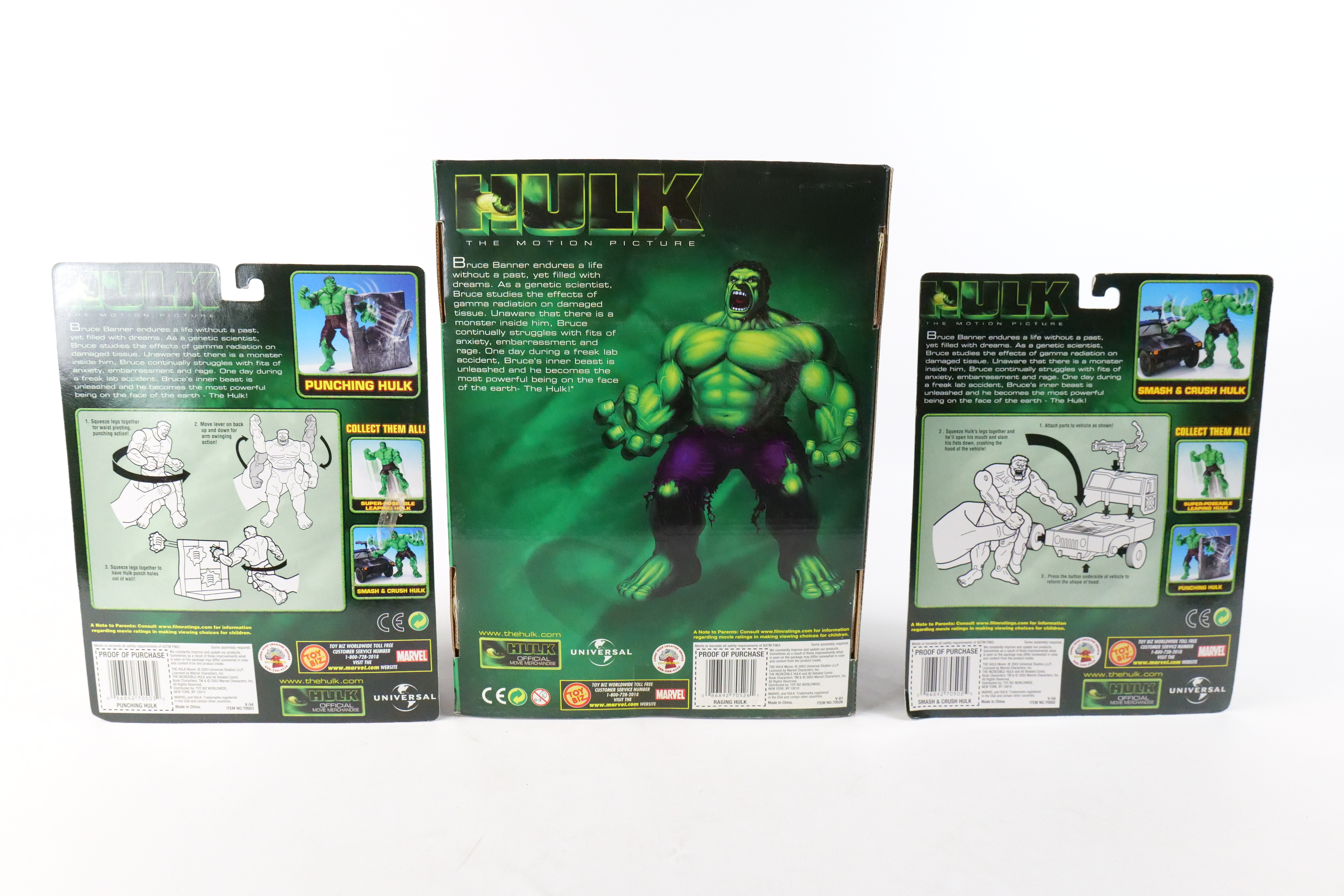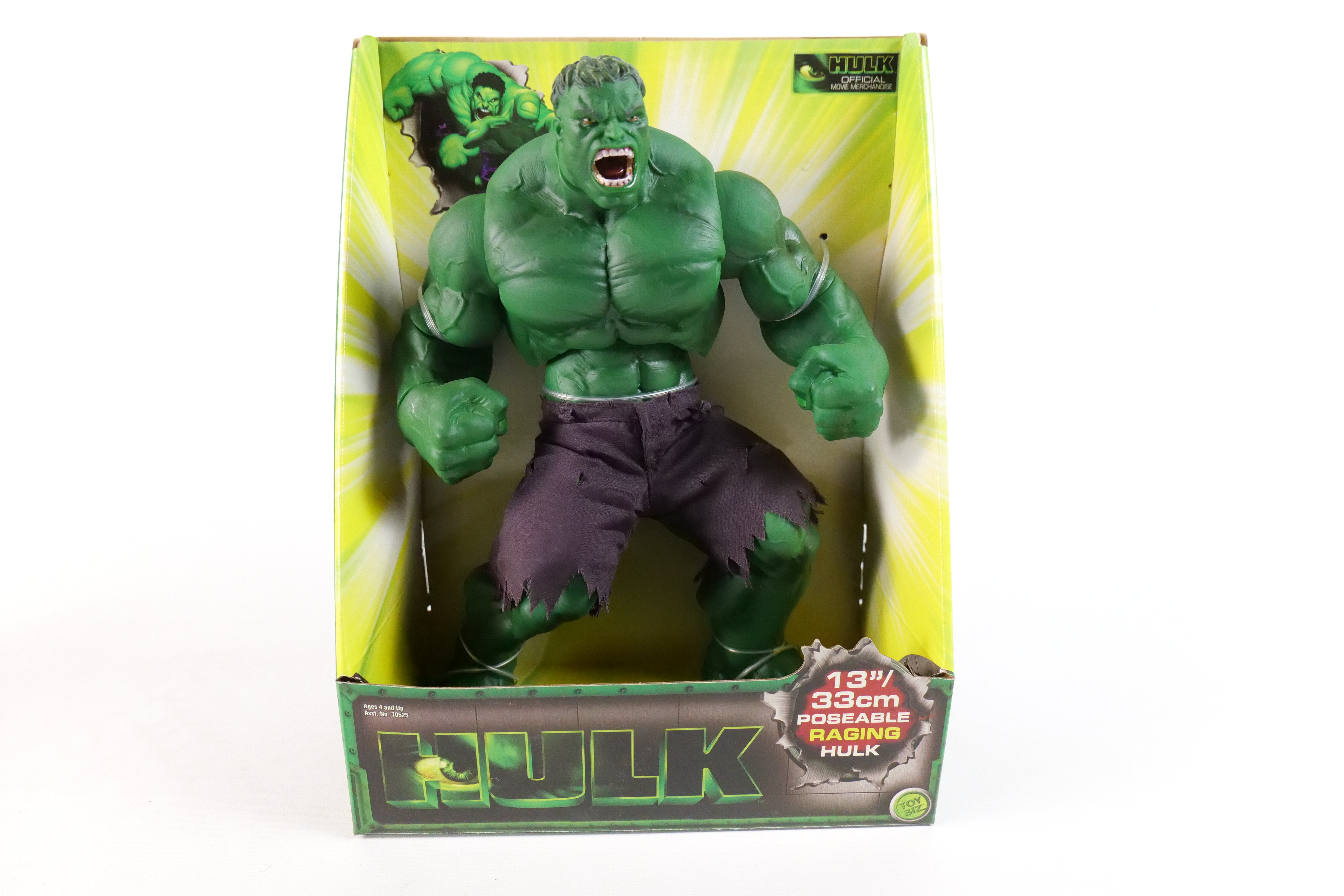 Lot of 3 Marvel Hulk Action Figures – Toy Biz. Including 13″ Poseable Raging Hulk, Smash & Crush Hulk, and Punching Hulk. All new in boxes. All invoices must be paid within 24 hours of the sale. We offer multiple shipping options, please read the terms as they have changed. We also offer Pick-Ups Friday, Saturday, and Monday immediately following the sale.