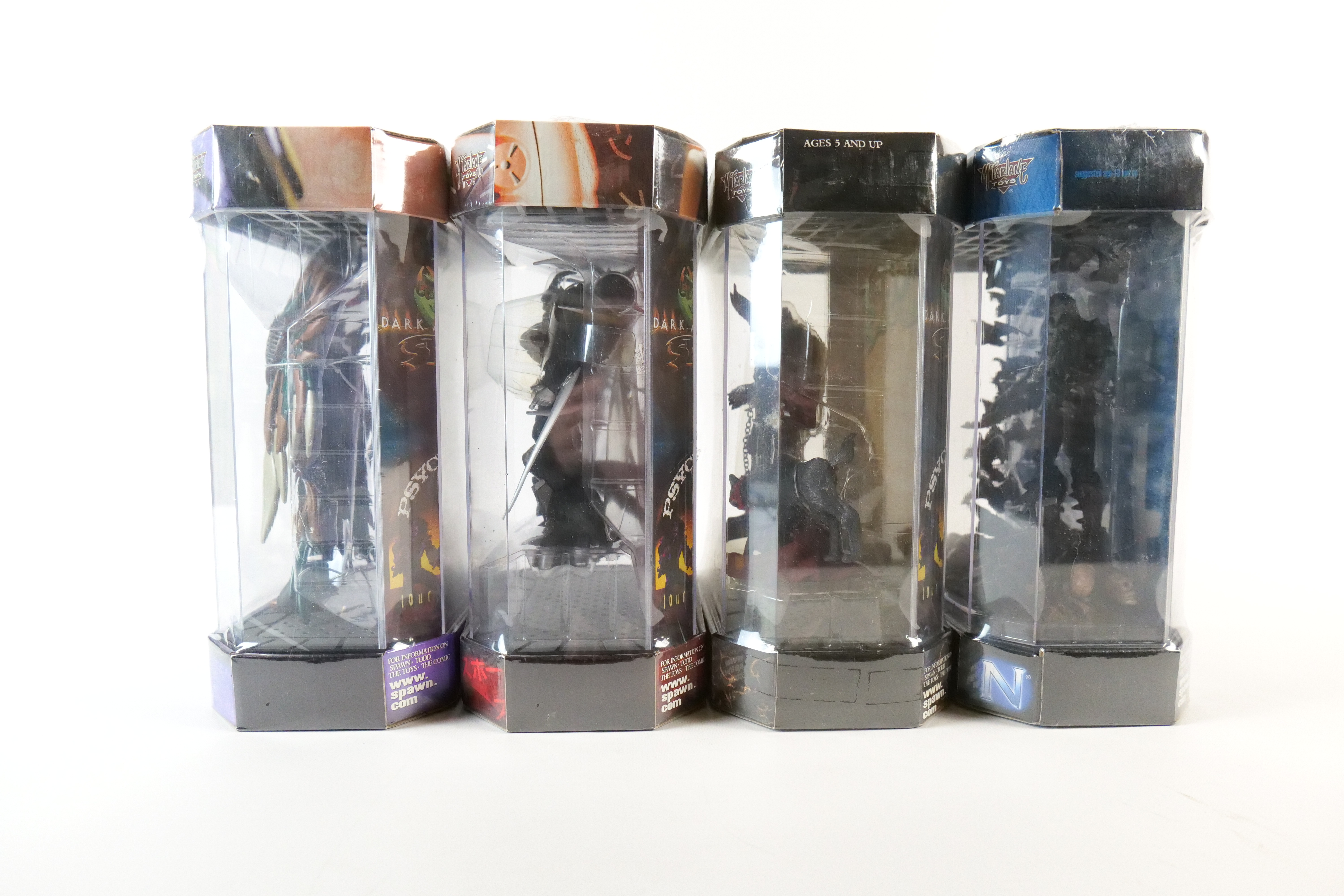 Lot of 4 Spawn Special Edition Figures. Including Spiked Spawn, Manga Spawn, Goddess, and Burnt Spawn. All new in package. All invoices must be paid within 24 hours of the sale. We offer multiple shipping options, please read the terms as they have changed. We also offer Pick-Ups Friday, Saturday, and Monday immediately following the sale. BY APPOINTMENT ONLY. PLEASE READ THE NEW TERMS!!!