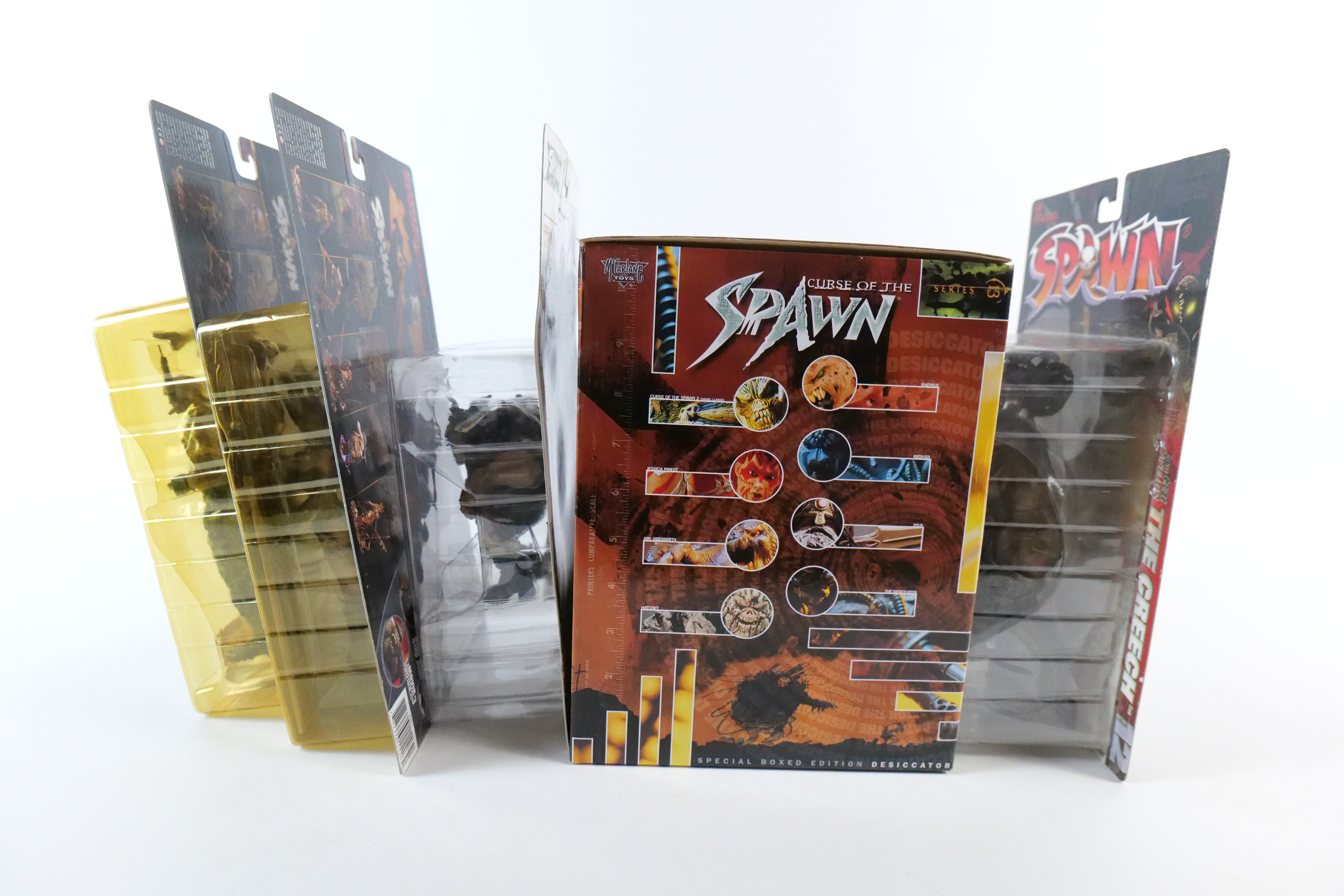 Lot of 5 McFarlane Spawn Figures. Including Spawn Series 12 – The Creech, Curse of the Spawn – Desiccator – Special Boxed Edition – Series 13, Spawn Classics Series 17 – Al Simmons and Tiffany II, and Classic Series Twenty – Clown IV. All new in packages. Some discoloration to the plastic. All invoices must be paid within 24 hours of the sale. We offer multiple shipping options, please read the terms as they have changed. We also offer Pick-Ups Friday, Saturday, and Monday immediately following the sale. BY APPOINTMENT ONLY.