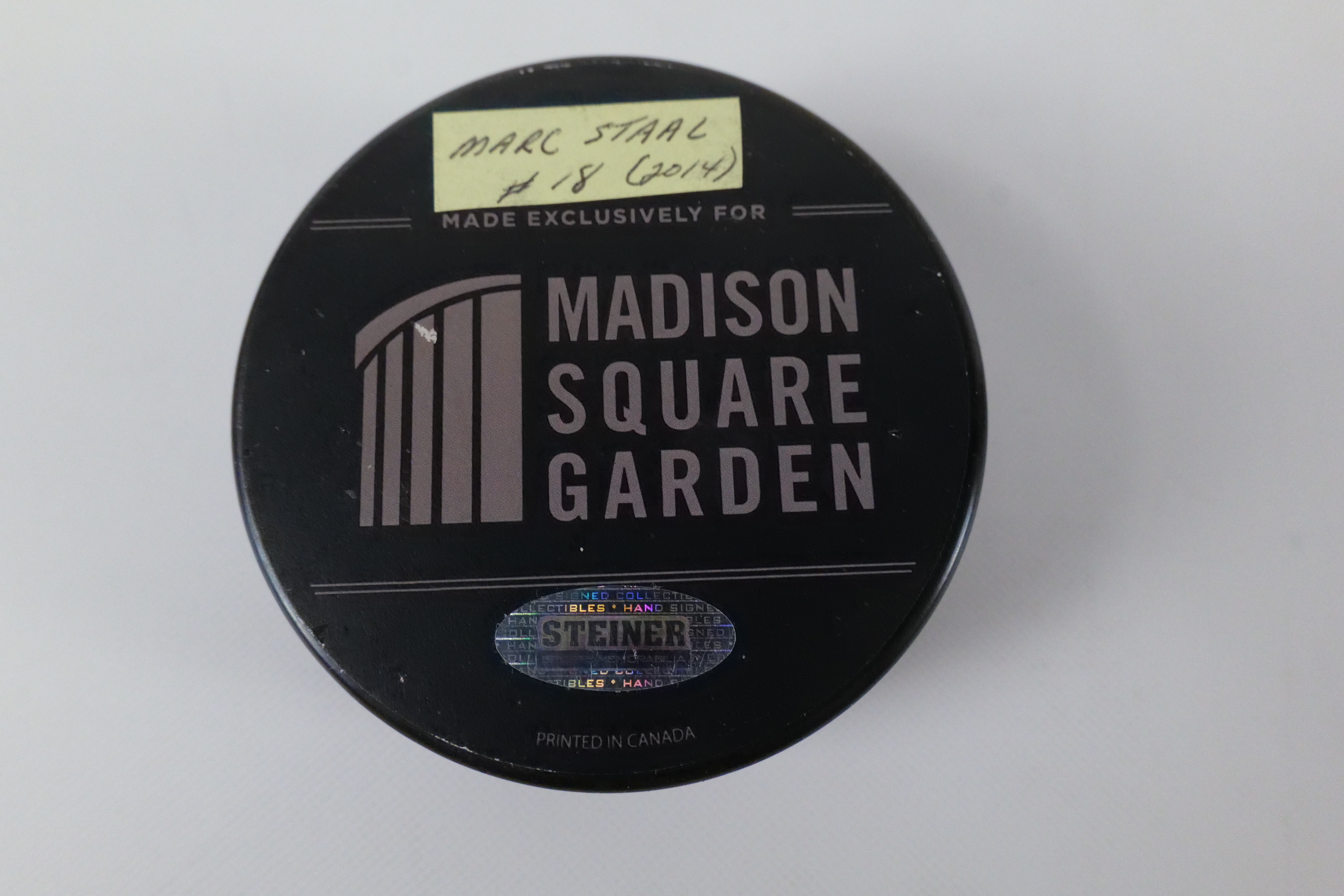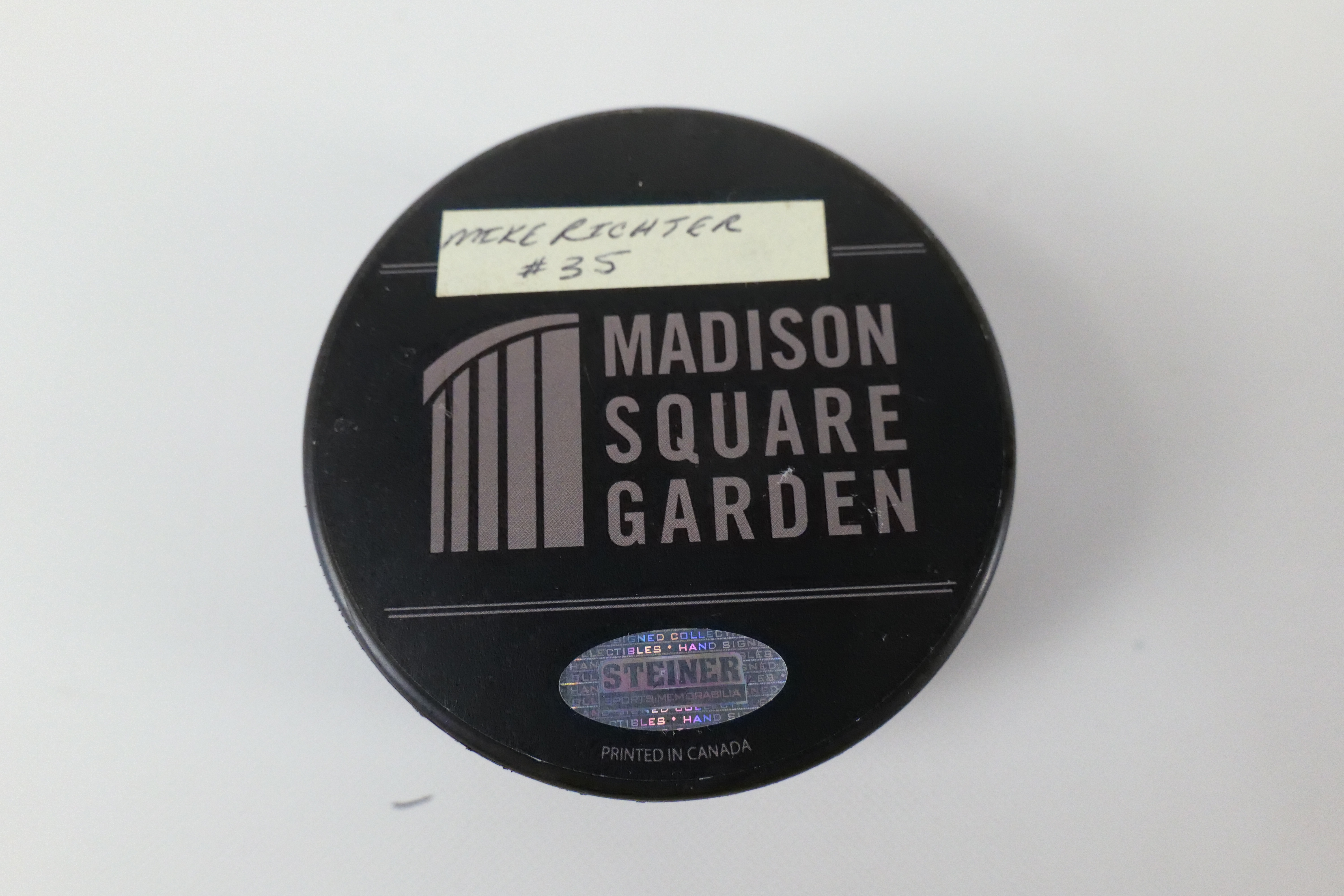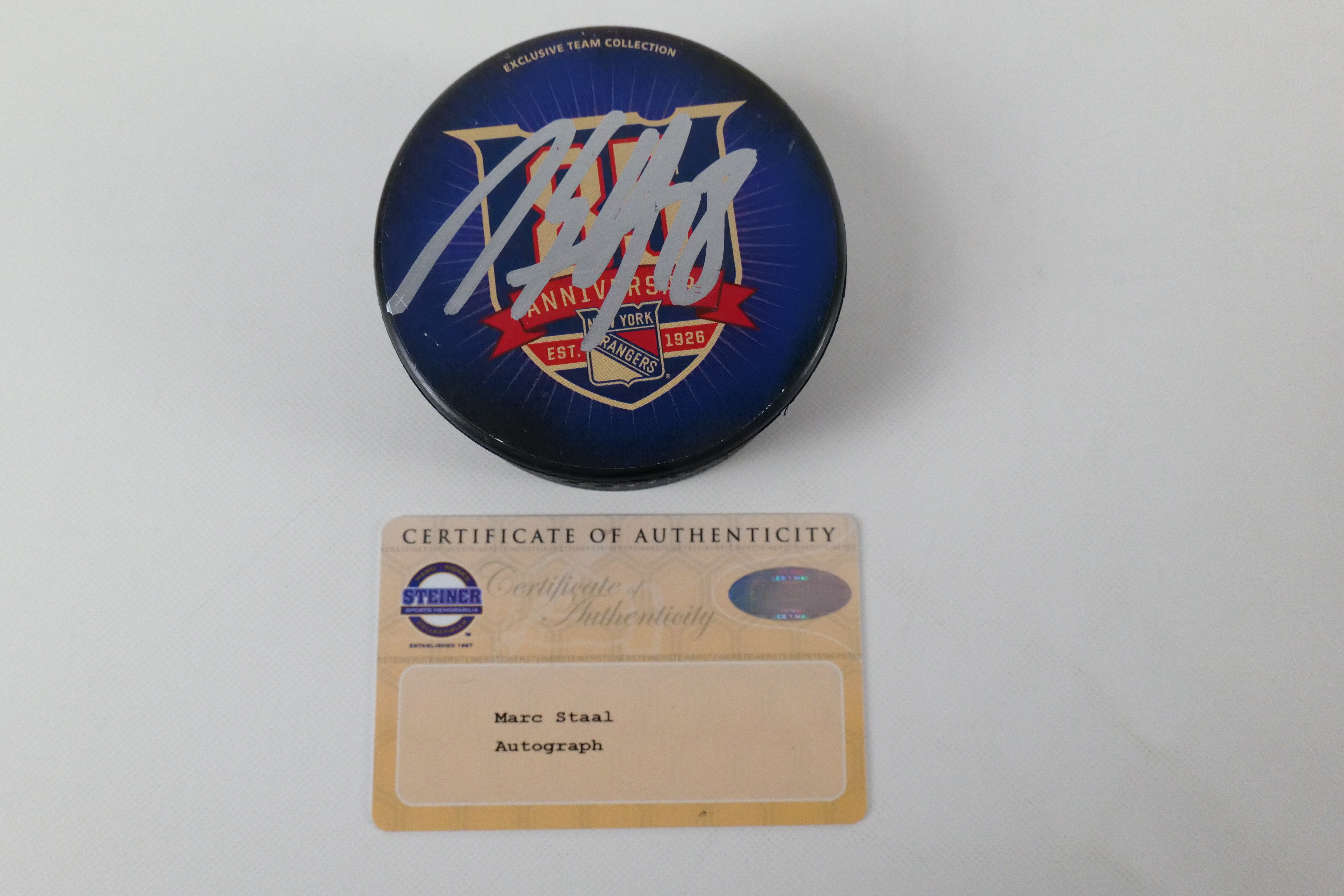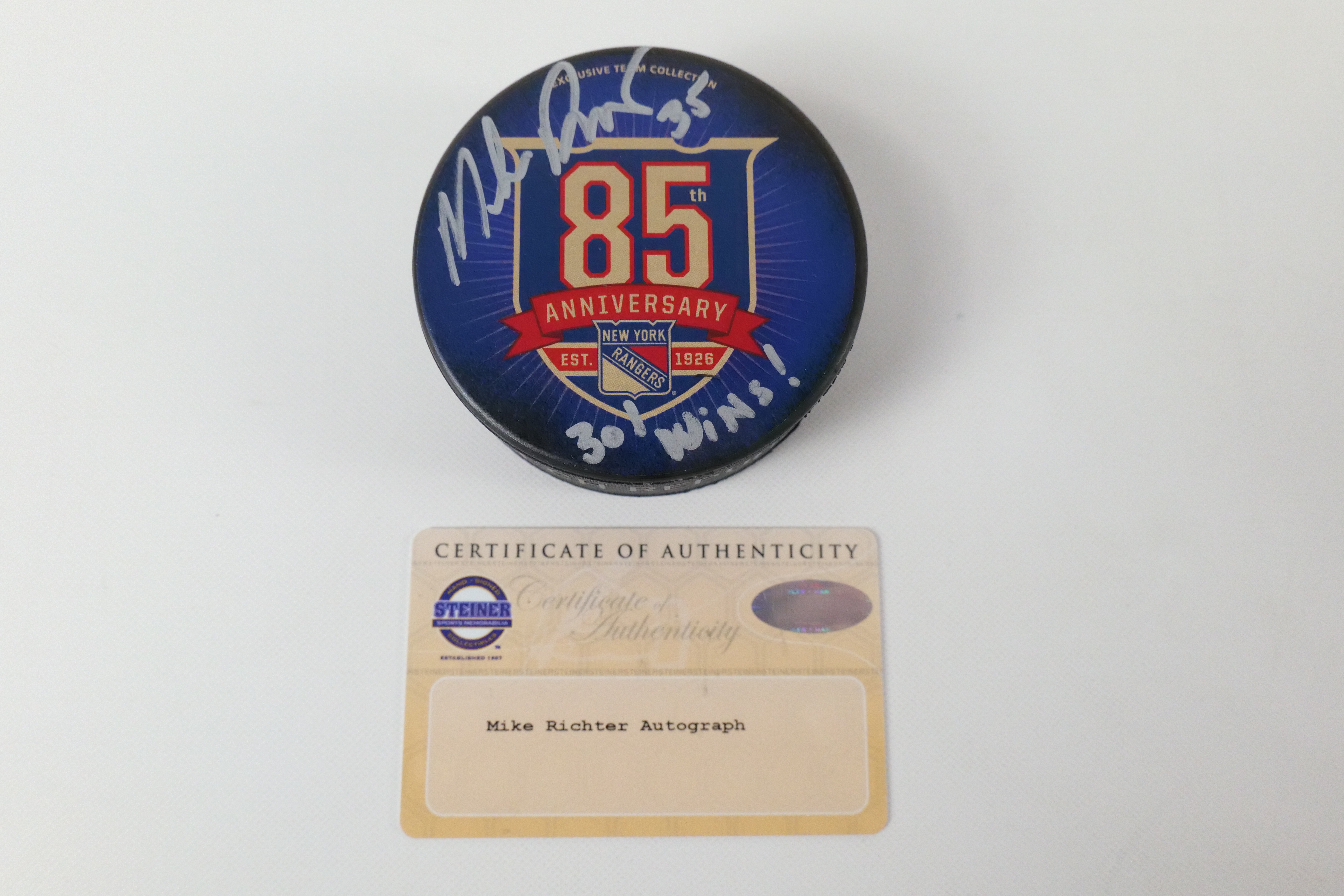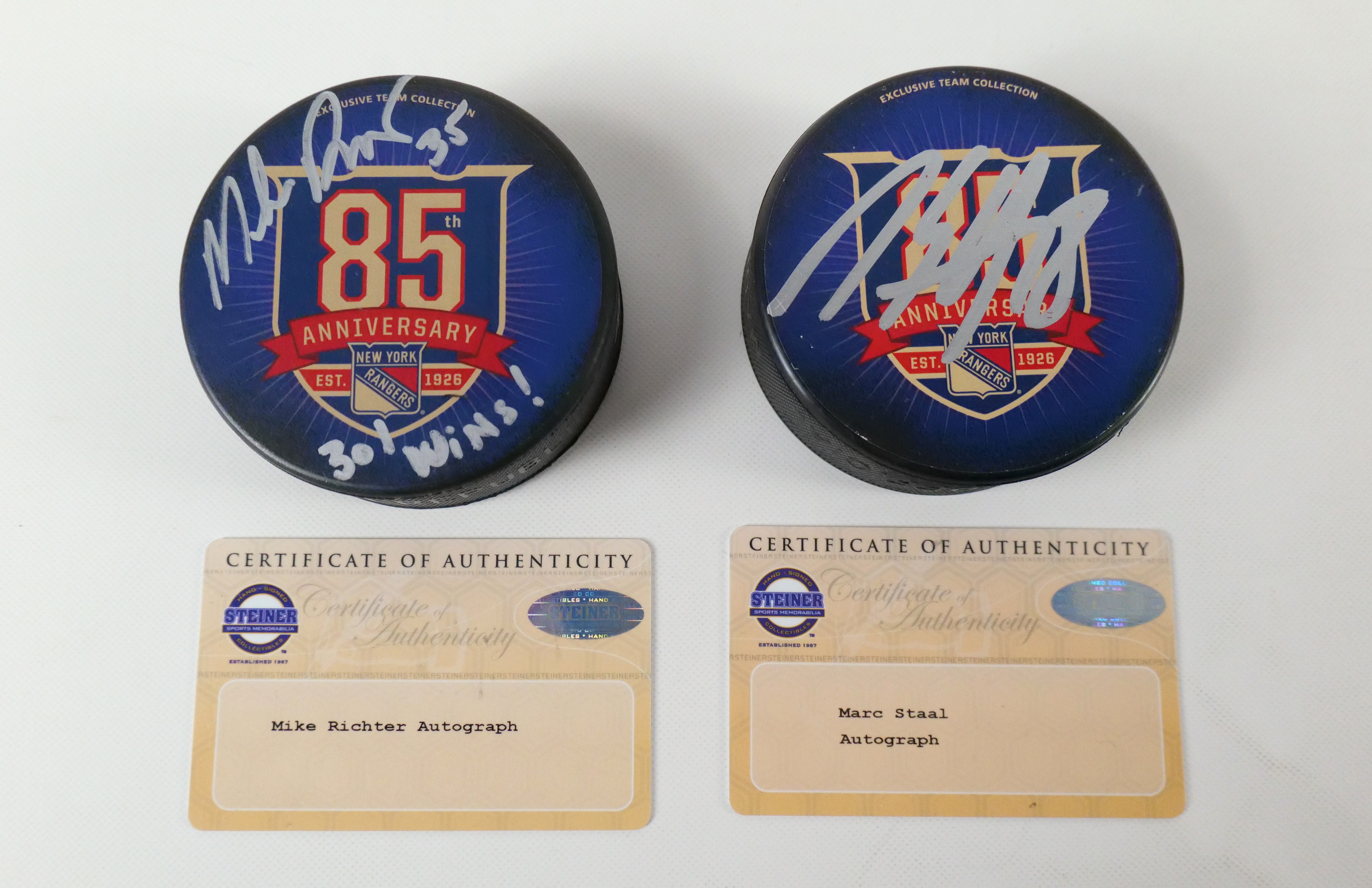 Lot of 2 New York Rangers Signed 85th Anniversary Hockey Pucks. Including Marc Staal with Steiner COA and Mike Richter Inscribed “301 Wins!” with Steiner COA. All invoices must be paid within 24 hours of the sale. We offer multiple shipping options, please read the terms as they have changed. We also offer Pick-Ups Friday, Saturday, and Monday immediately following the sale. BY APPOINTMENT ONLY.