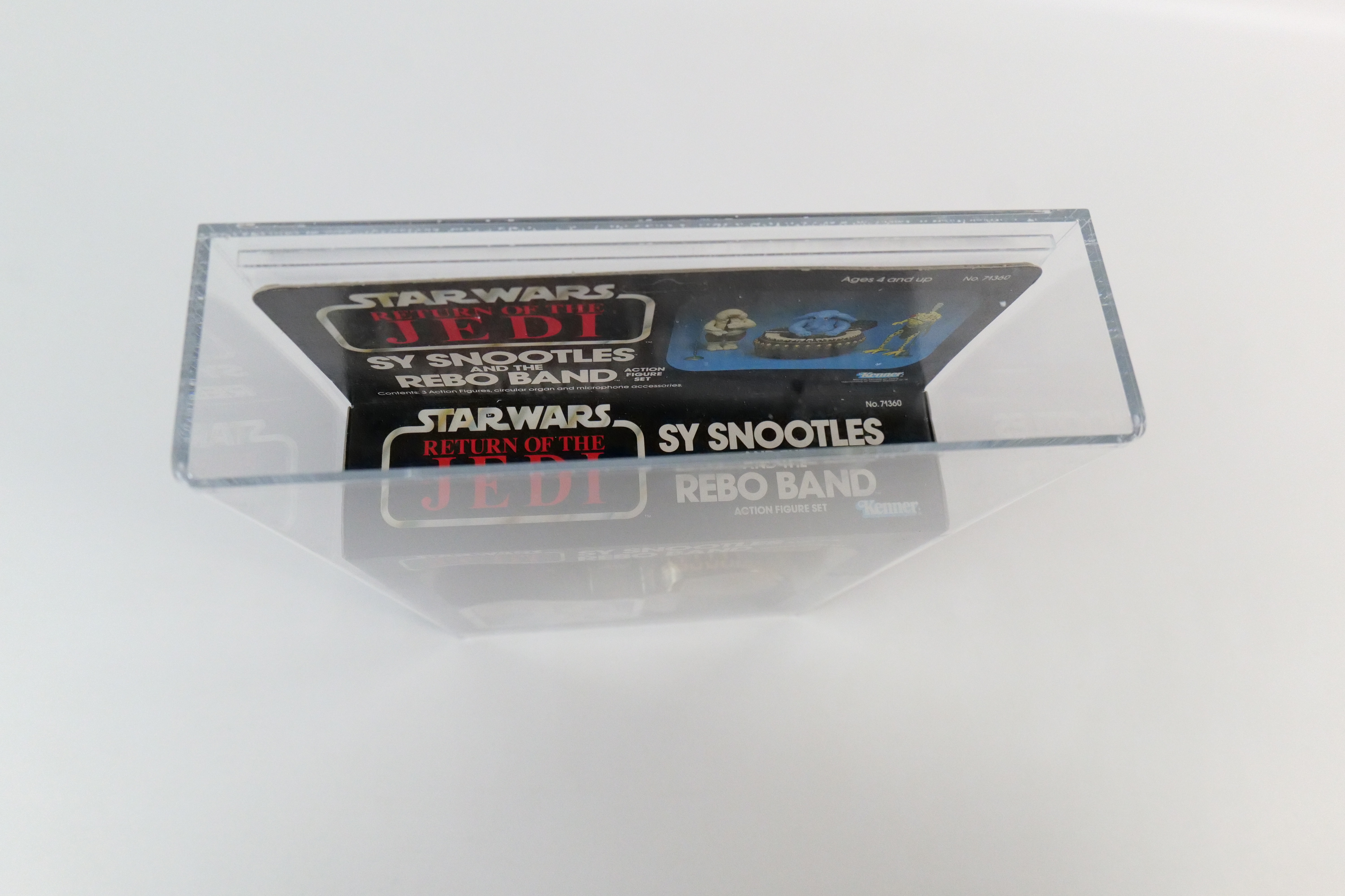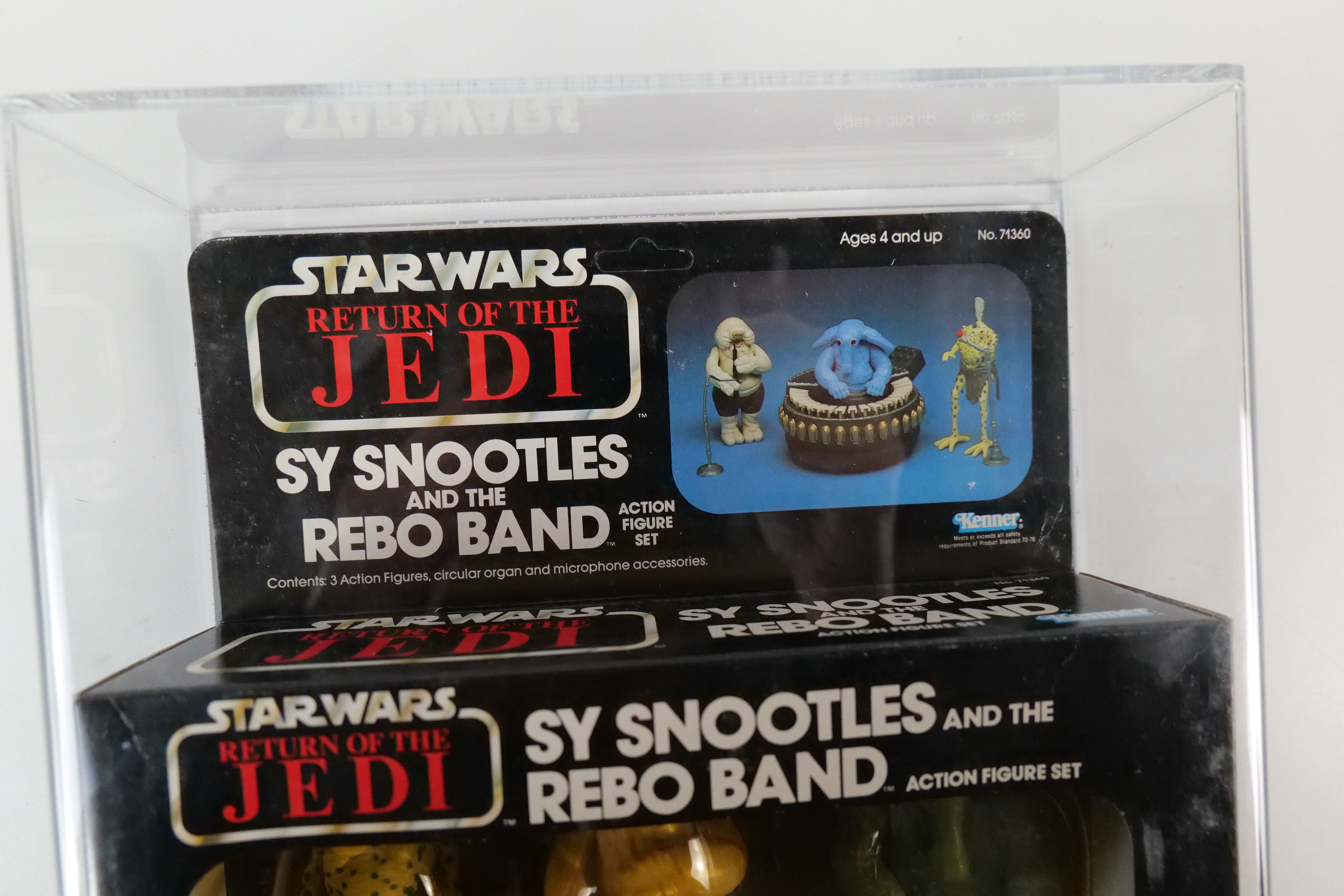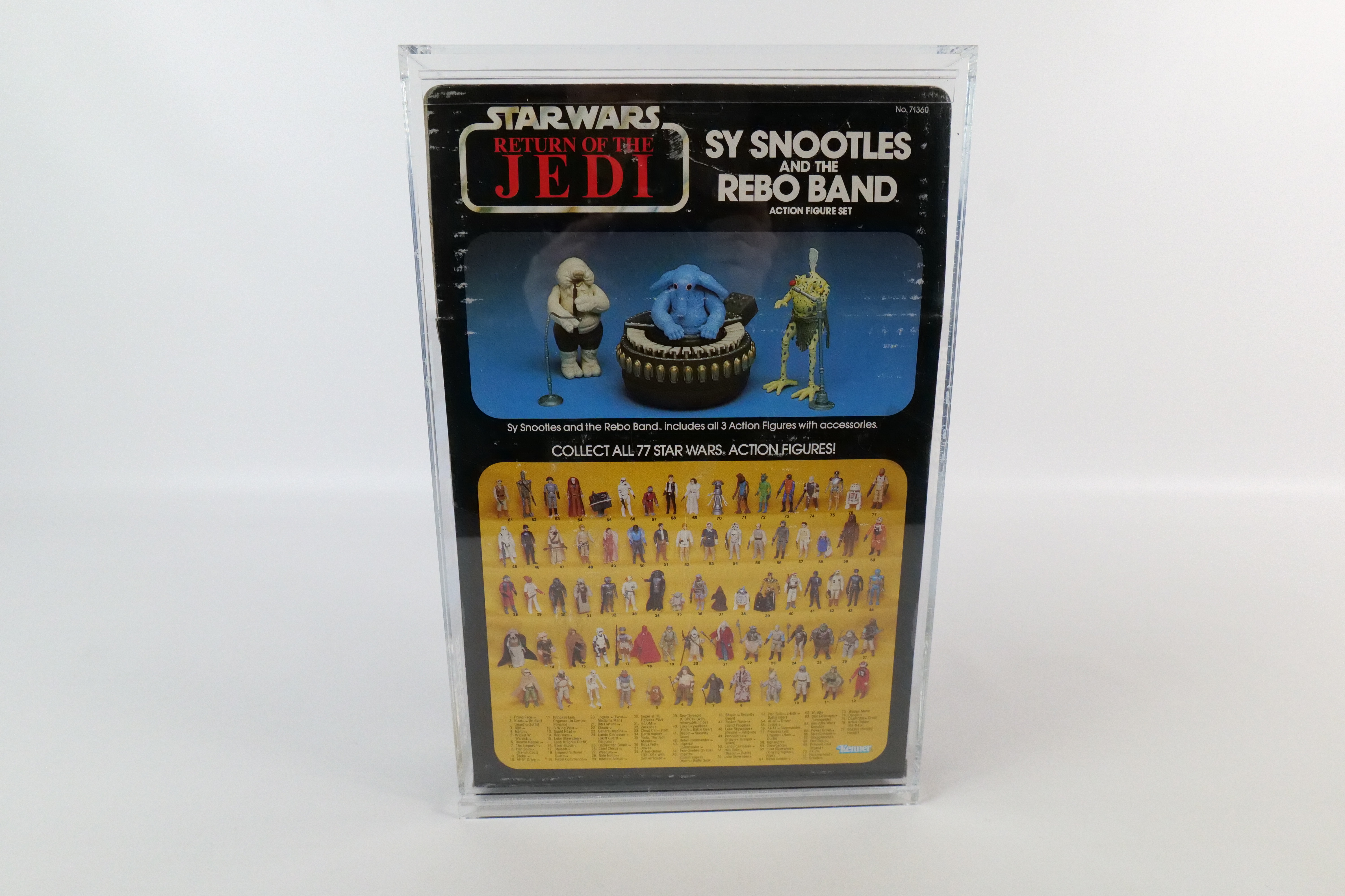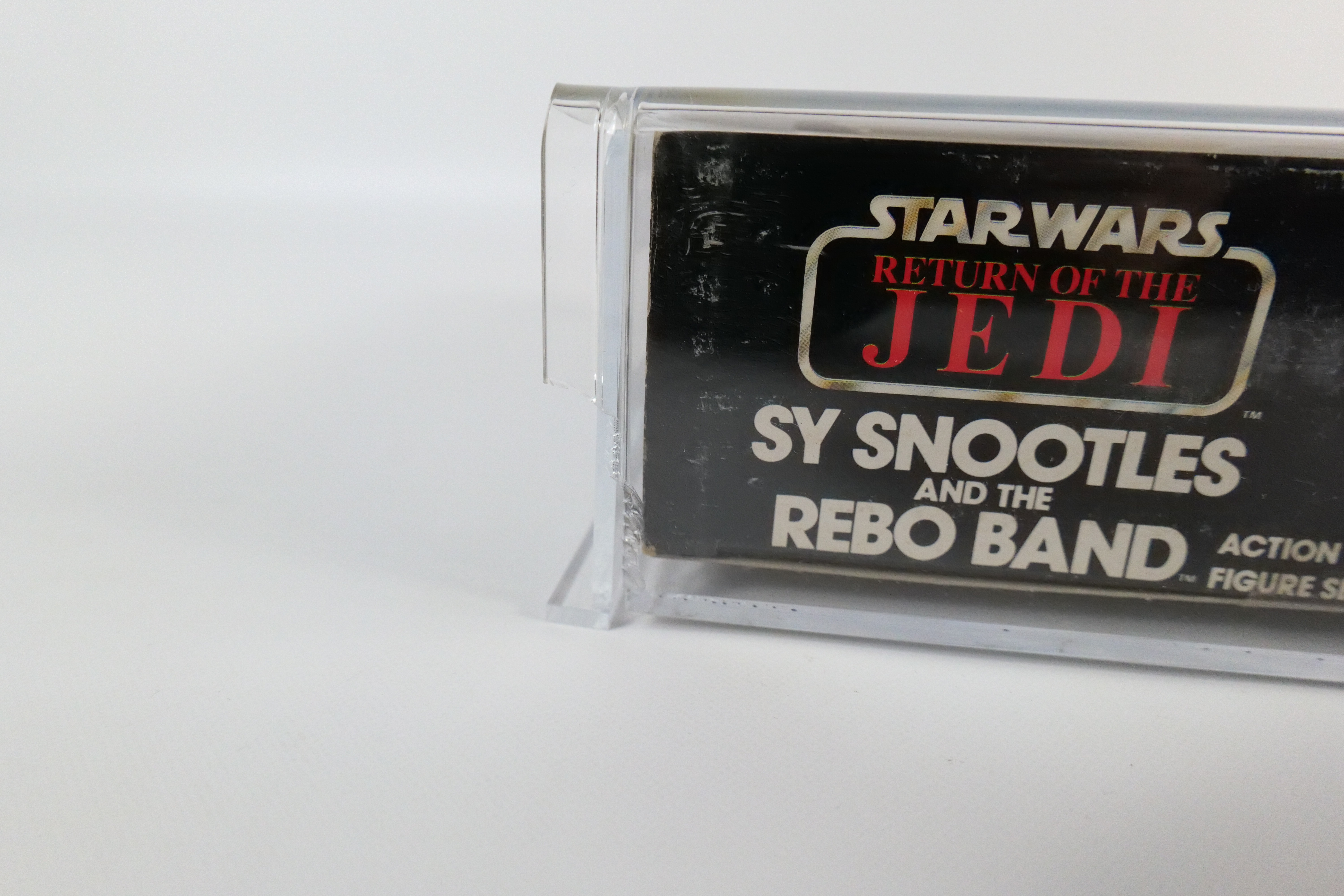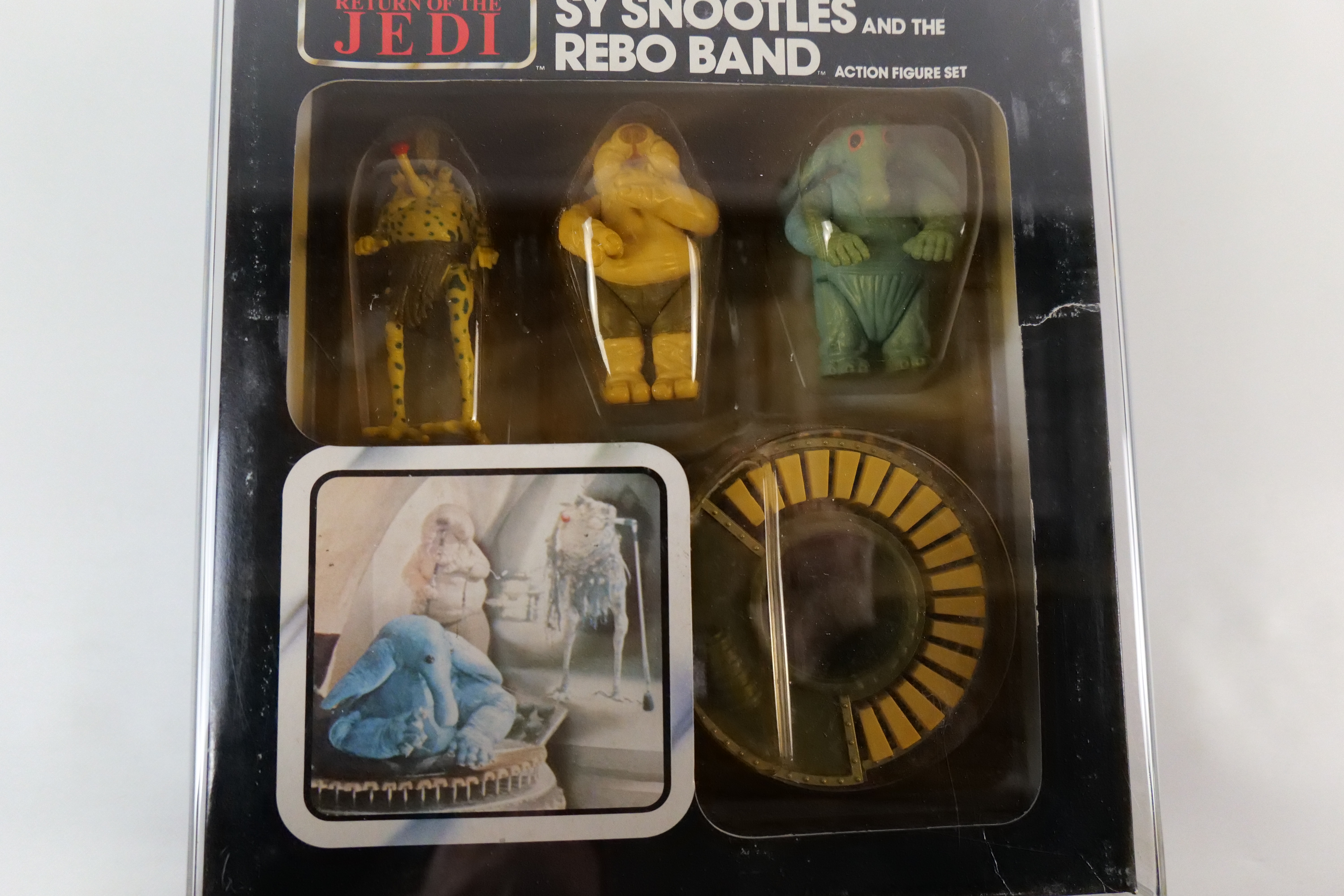 Kenner Star Wars Return of the Jedi Sy Snootles and the Rebo Band Action Figure Set – 1983. 77 Card Back. Sealed in package. Unpunched. Some discoloration to the blister and a tear on the side edge. Overall nice vintage condition. Comes in Lucite case. All invoices must be paid within 24 hours of the sale. We offer multiple shipping options please read the shipping terms to understand your options.All invoices must be paid within 24 hours of the sale. We offer multiple shipping options please read the shipping terms to understand your options. We also offer Pick-Ups Friday, Saturday, and Monday immediately following the sale. BY APPOINTMENT ONLY.