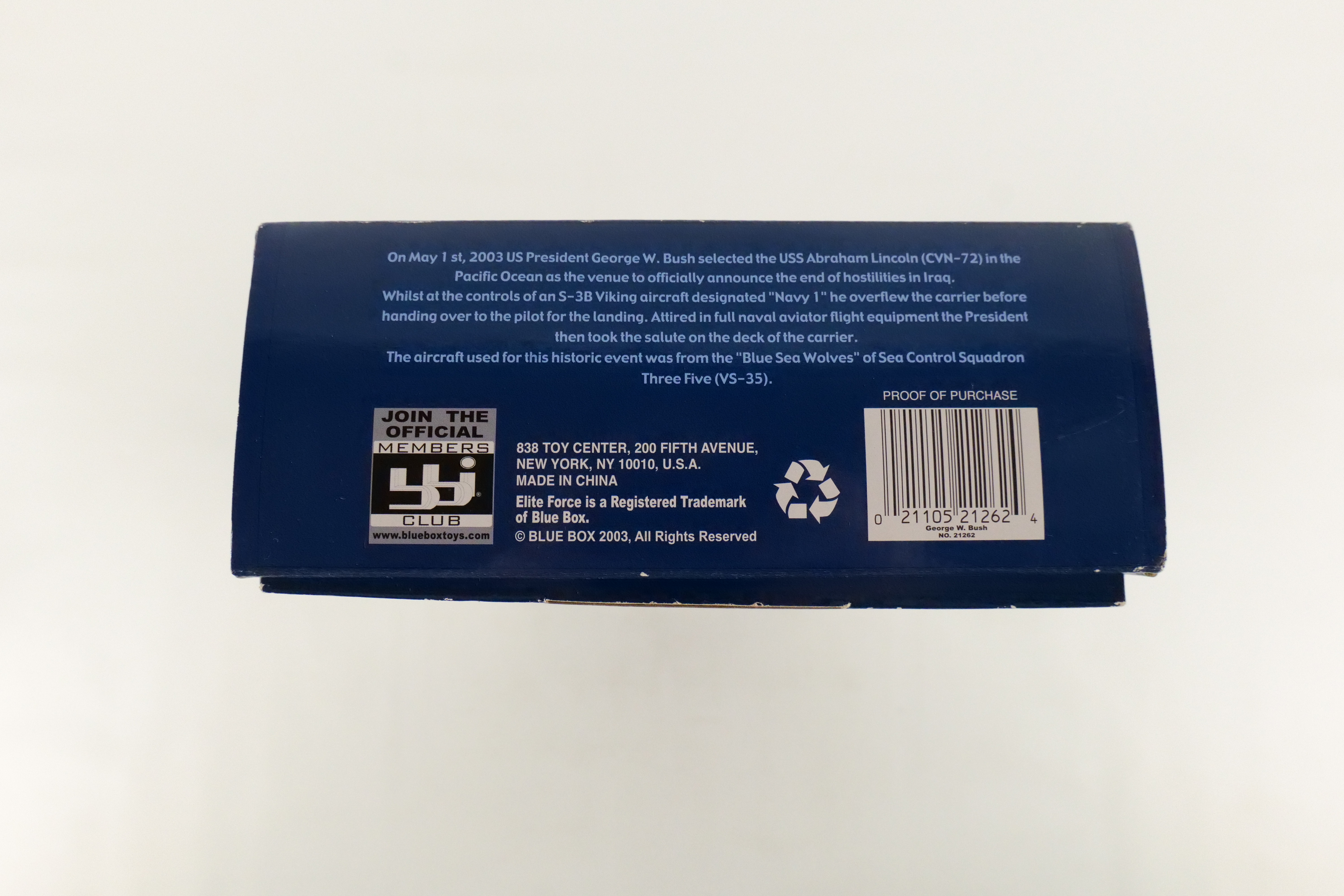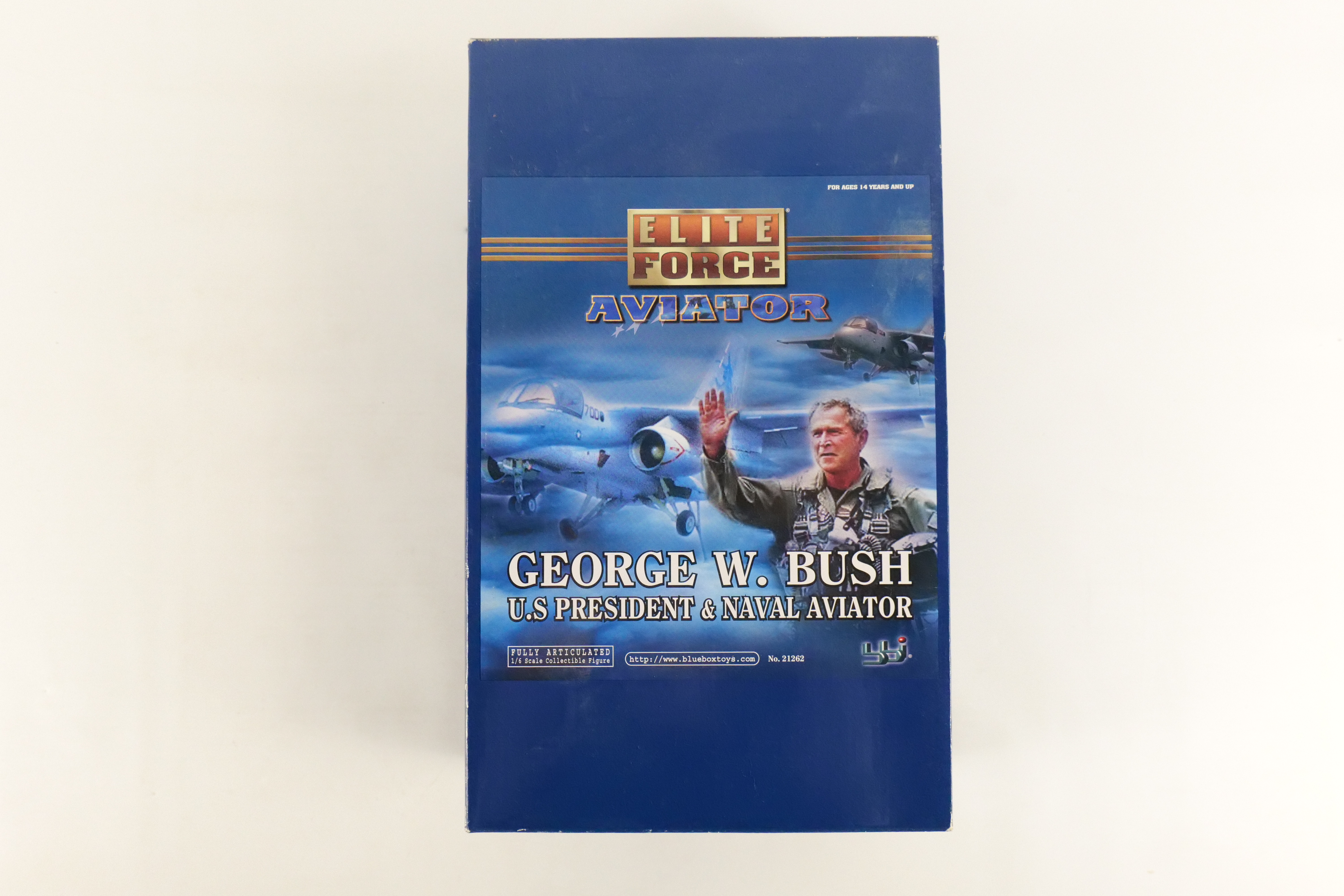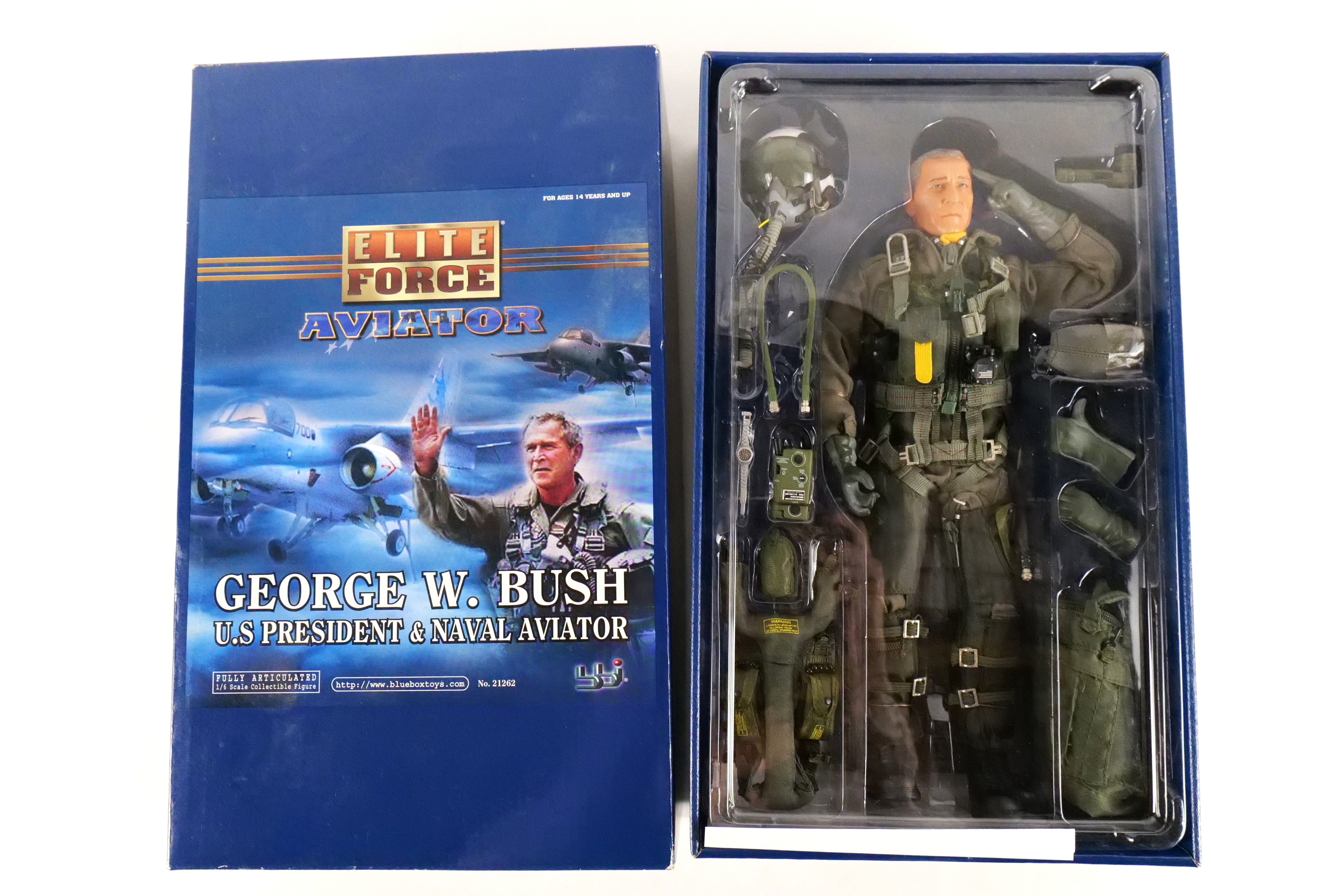Elite Force Aviator Geroge W Bush US President and Naval Aviator Action Figure. By Blue Box Toys. 1/6 scale. New in Box. 11.5 inch figure. All invoices must be paid within 24 hours of the sale. We offer multiple shipping options please read the shipping terms to understand your options. We also offer Pick-Ups Friday, Saturday, and Monday immediately following the sale. BY APPOINTMENT ONLY.