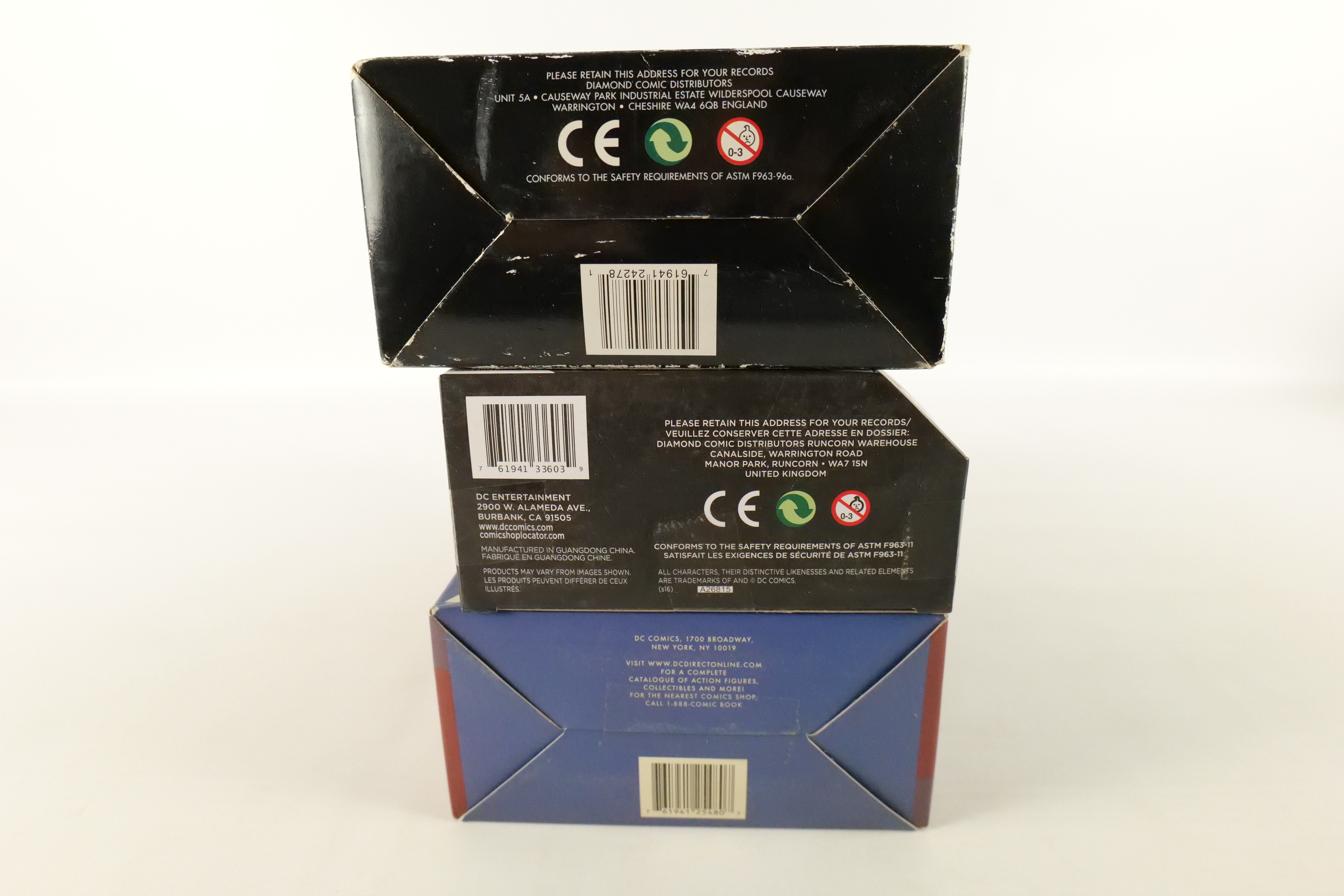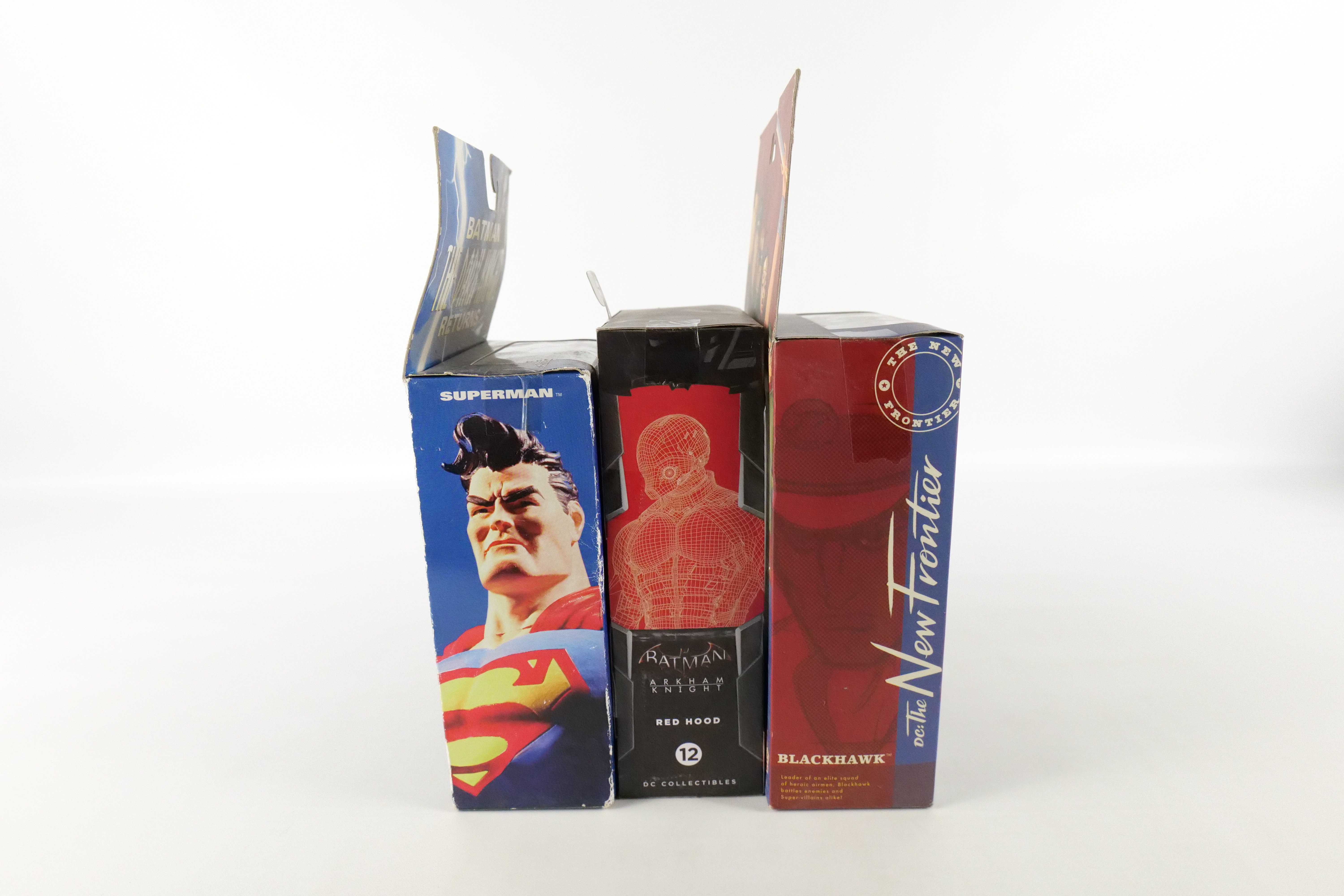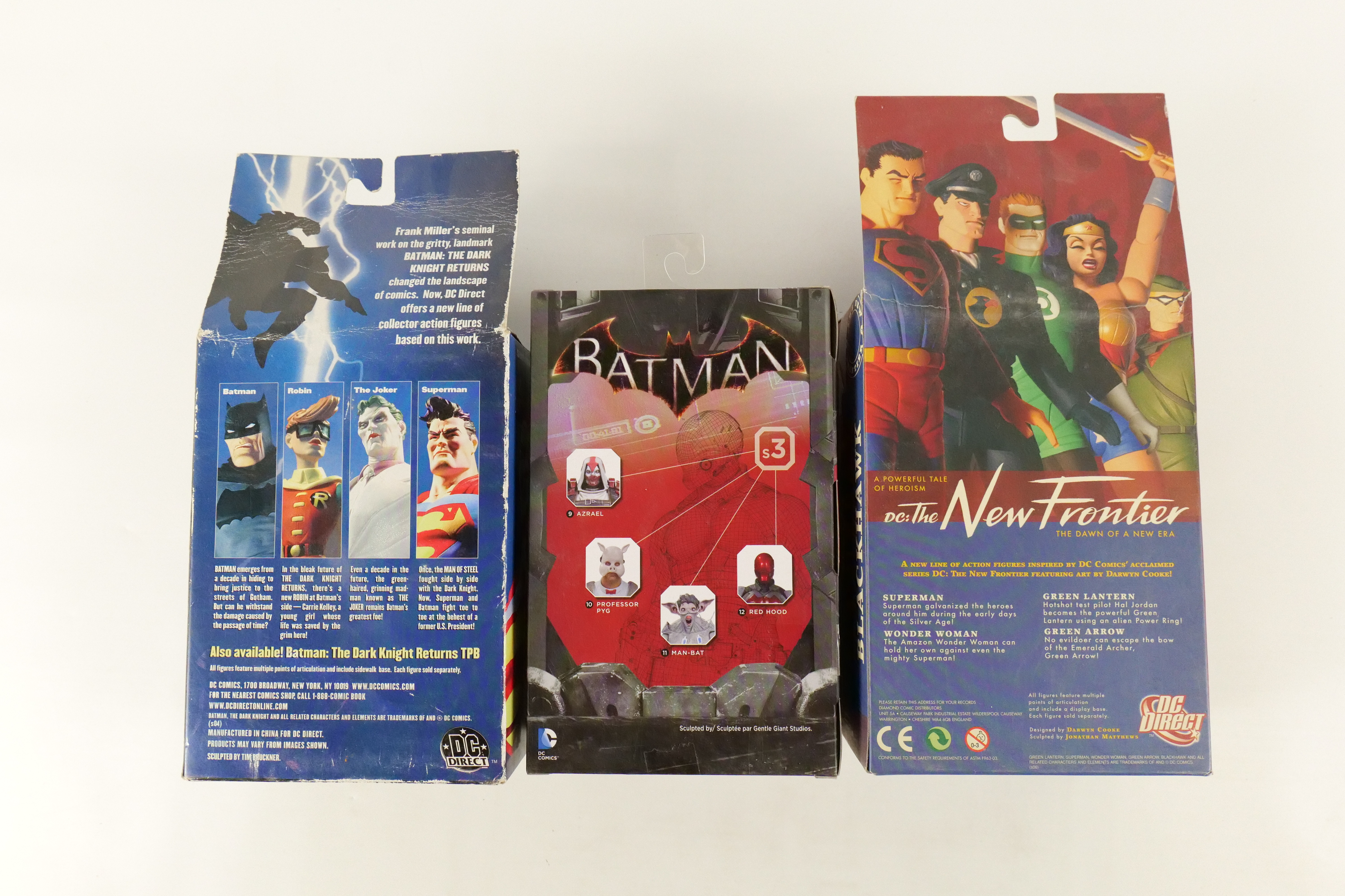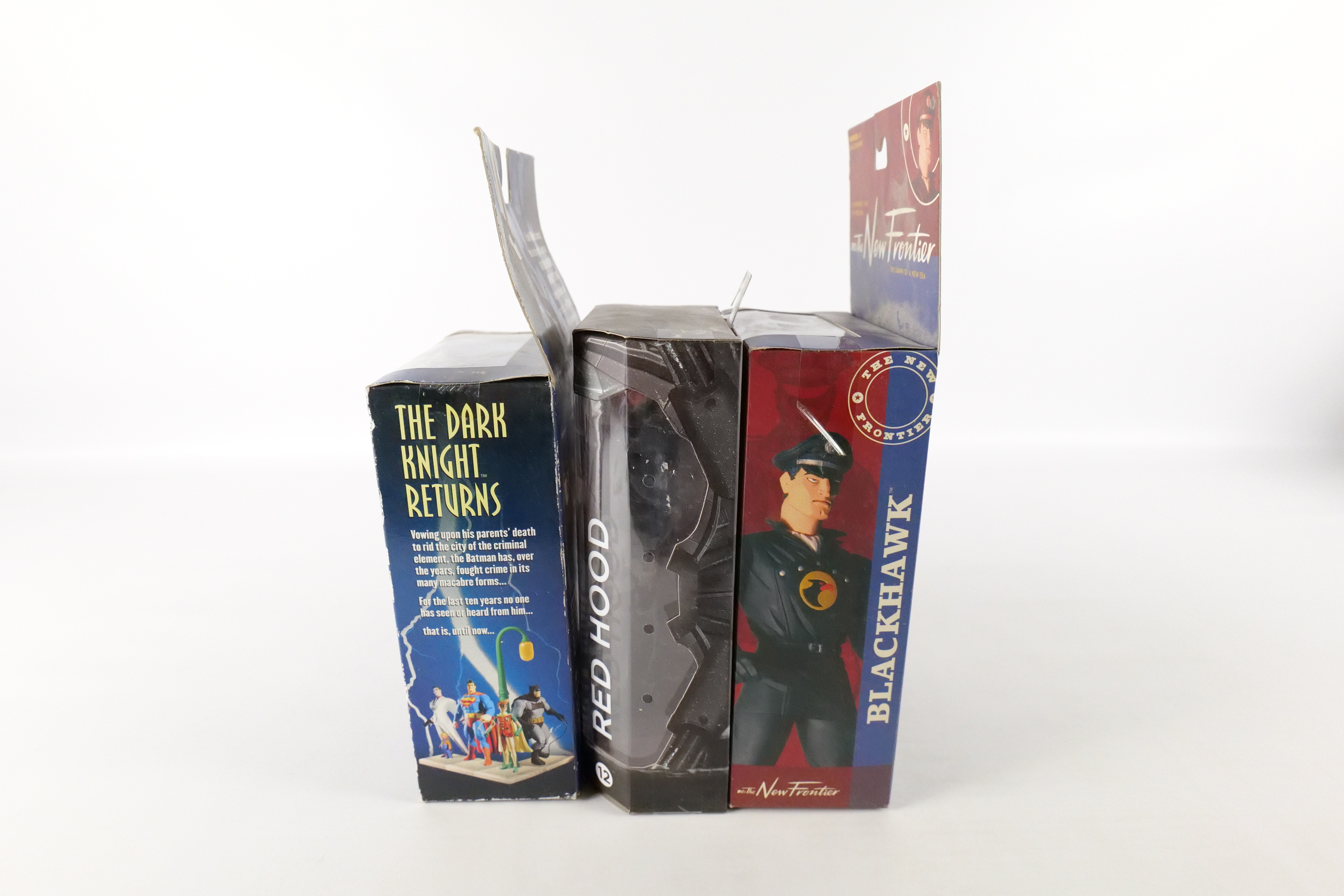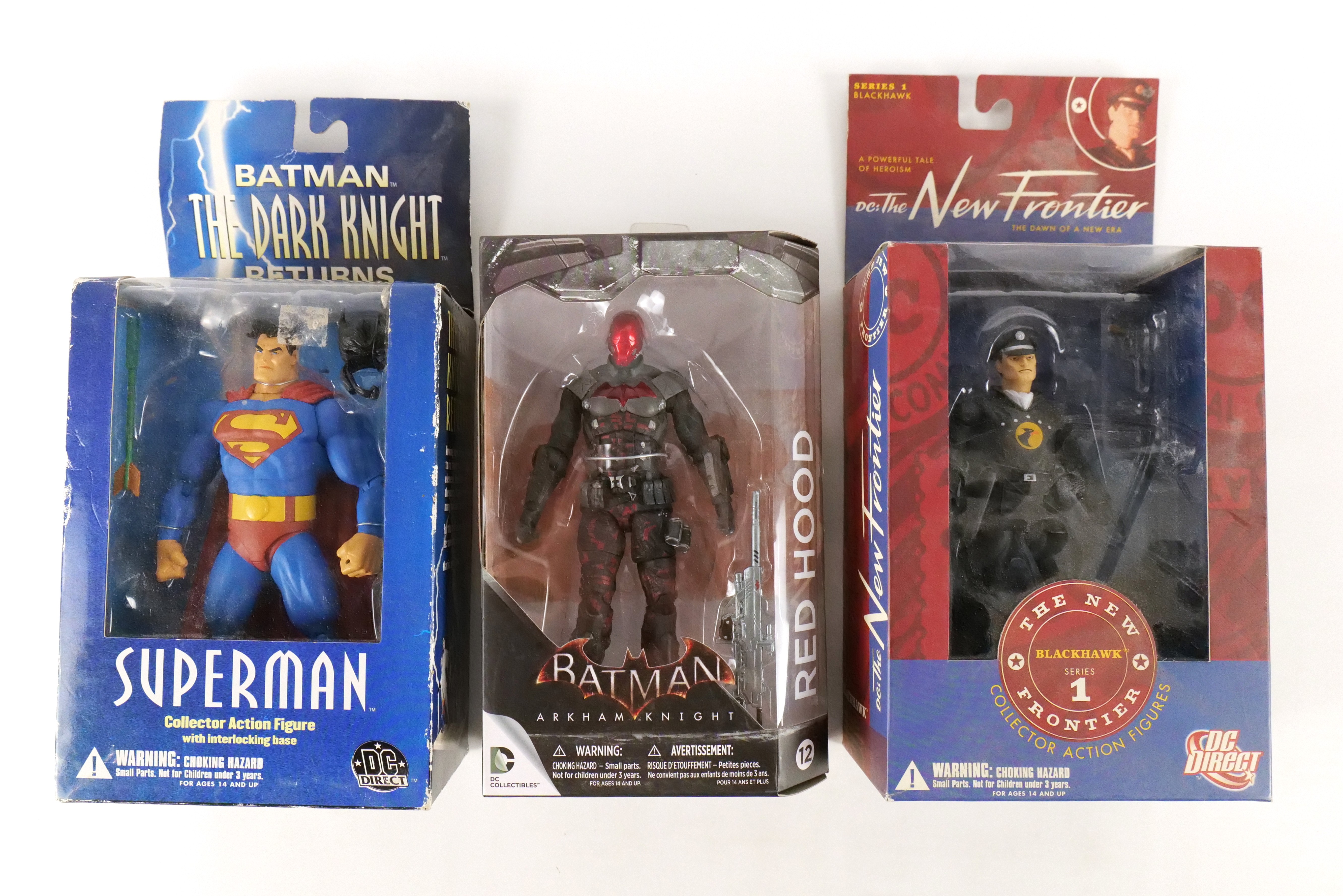Group lot of 3 Action Figures including DC Direct Batman the Dark Knight Returns Superman, DC Direct The New Frontier Blackhawk Series 1, and DC Collectibles Batman Arkham Knight Red Hood. New in box, 6 inch figures. All new in box, 6 inch figures. All invoices must be paid within 24 hours of the sale. We offer multiple shipping options please read the shipping terms to understand your options. We also offer Pick-Ups Friday, Saturday, and Monday immediately following the sale. BY APPOINTMENT ONLY.