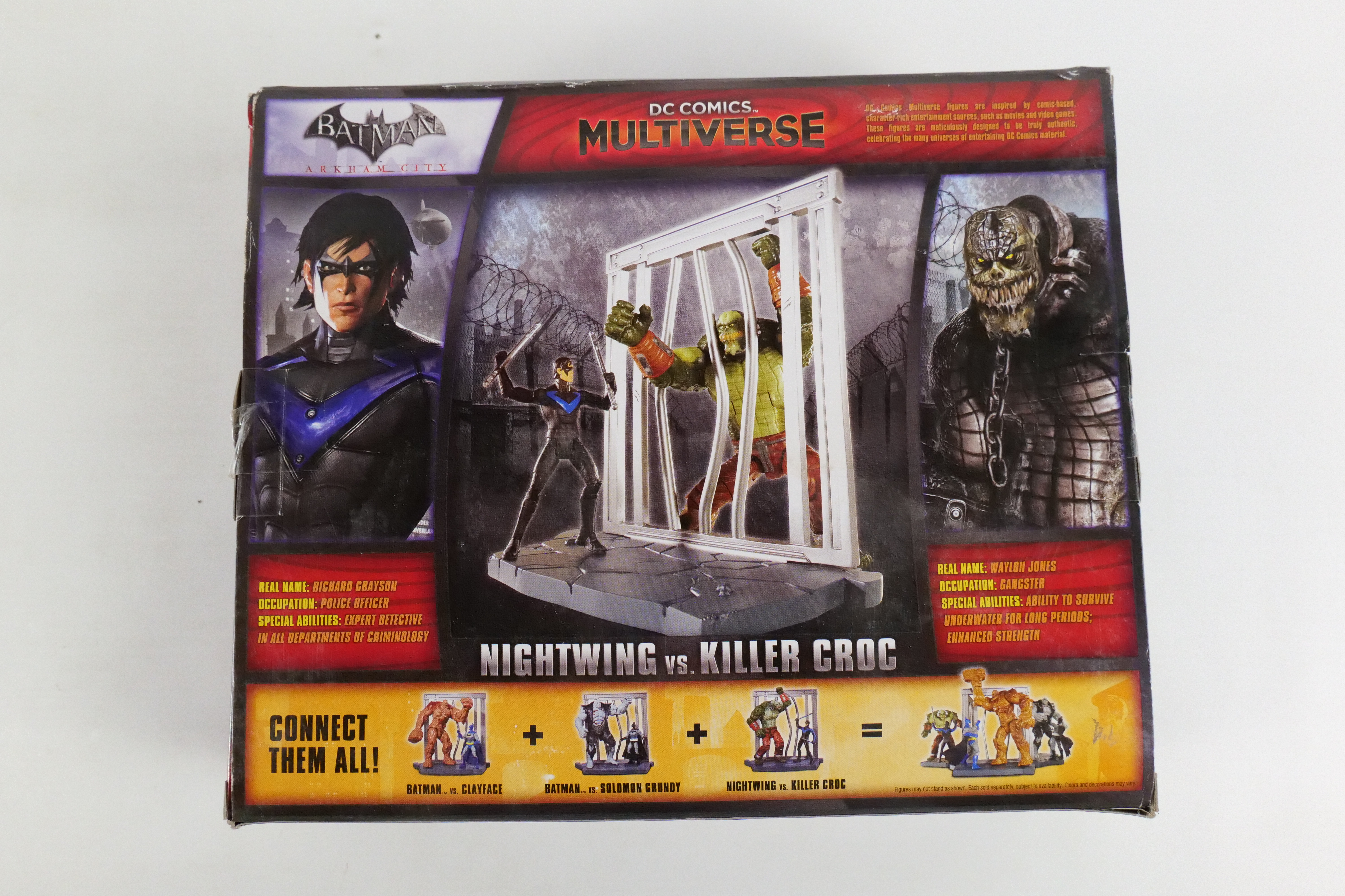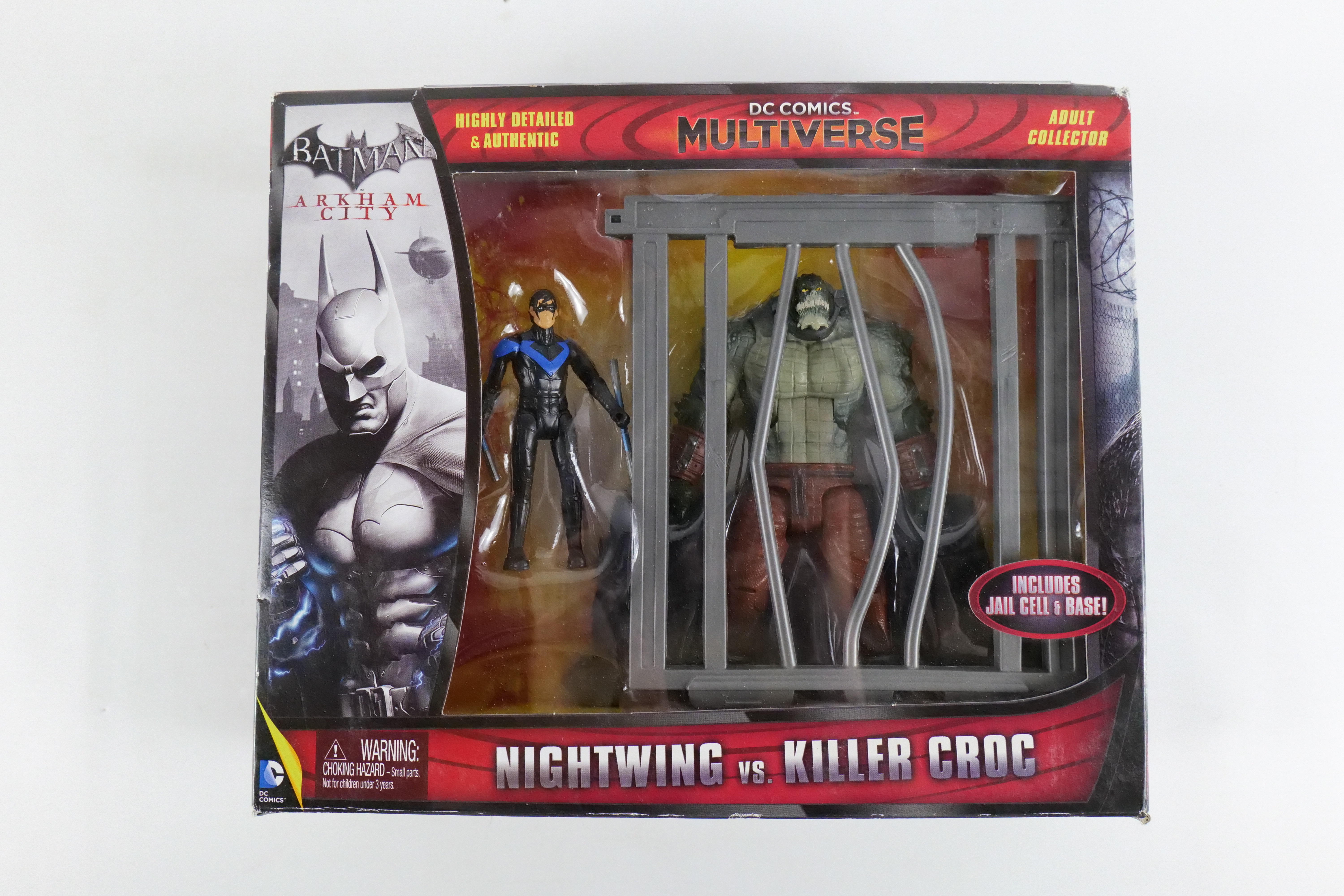 Lot of 2 DC Comics Multiverse Batman Arkham City Figure Sets. Including Nightwing vs Killer Croc and Batman vs Solomon Grundy. 4 and 6 inch figures. Both New in box. All invoices must be paid within 24 hours of the sale. We offer multiple shipping options please read the shipping terms to understand your options. We also offer Pick-Ups Friday, Saturday, and Monday immediately following the sale. BY APPOINTMENT ONLY.