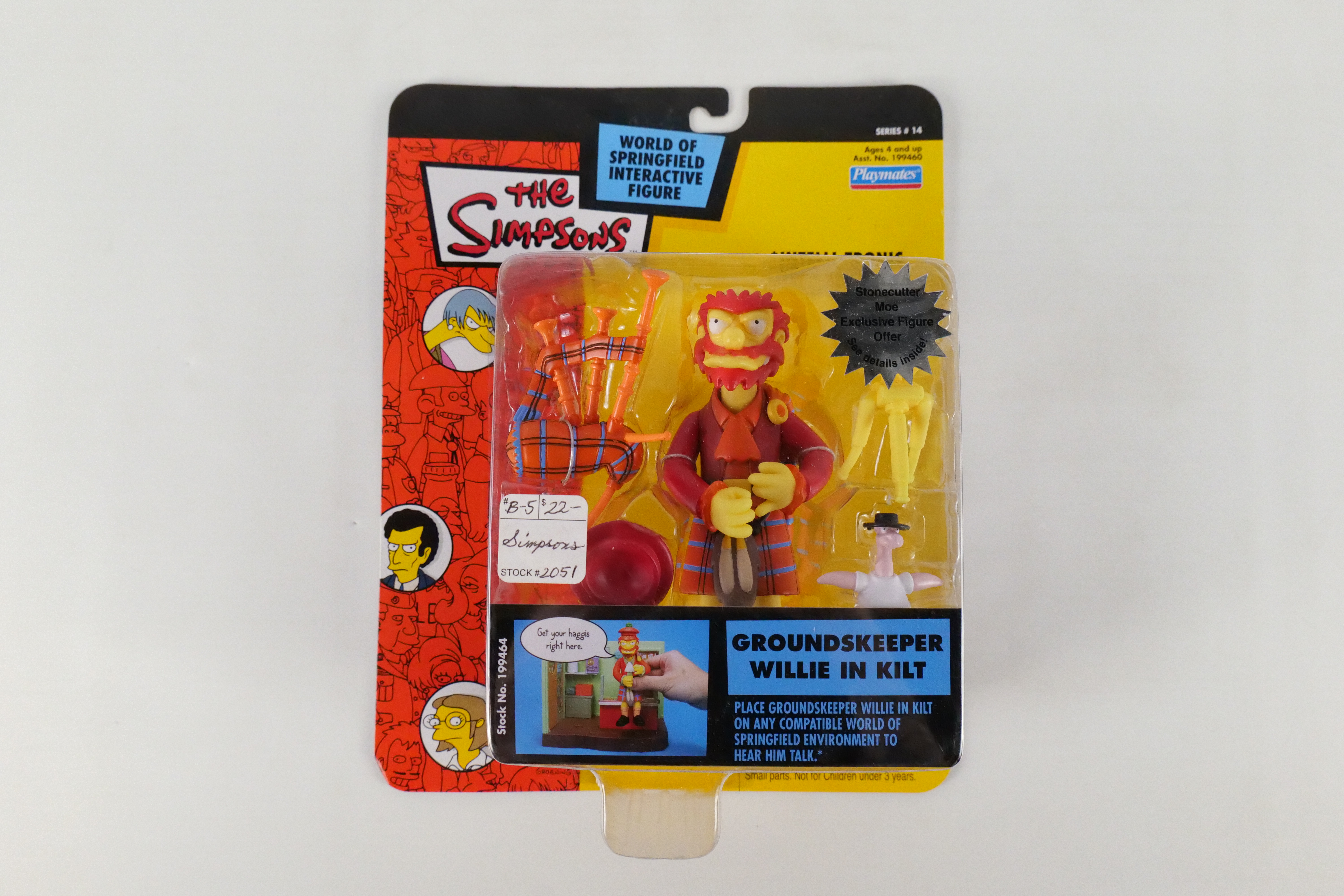 Lot of 2 Simpsons Action Figures. Including Kirk Van Houten and Groundskeeper Willie in Kilt. Both new in package. All invoices must be paid within 24 hours of the sale. We offer multiple shipping options please read the shipping terms to understand your options. We also offer Pick-Ups Friday, Saturday, and Monday immediately following the sale. BY APPOINTMENT ONLY.