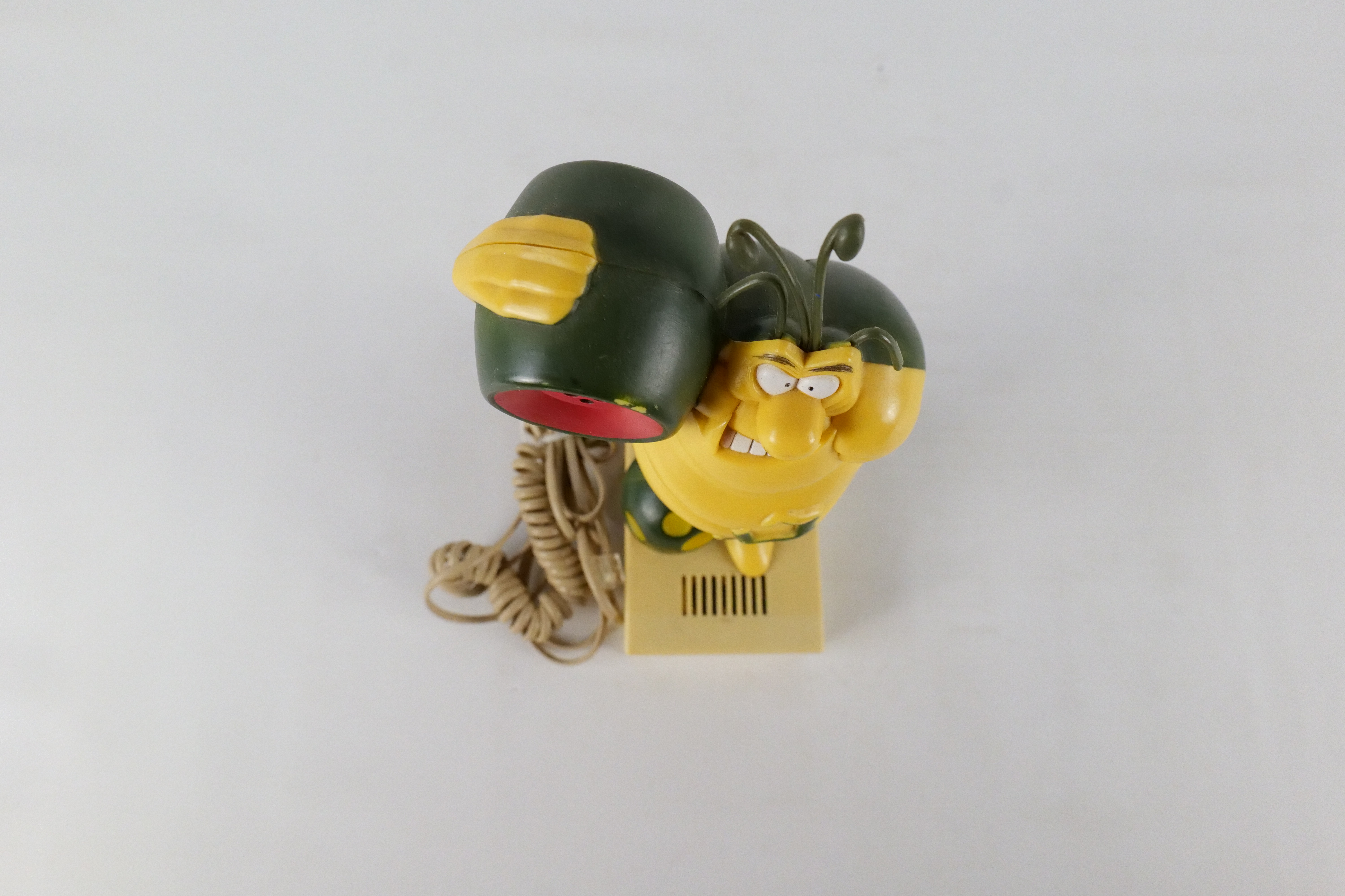 Vintage Raid Bug Plastic Telephone. Some light wear. Measures 9″ tall. All invoices must be paid within 24 hours of the sale. We offer multiple shipping options please read the shipping terms to understand your options. We also offer Pick-Ups Friday, Saturday, and Monday immediately following the sale. BY APPOINTMENT ONLY.