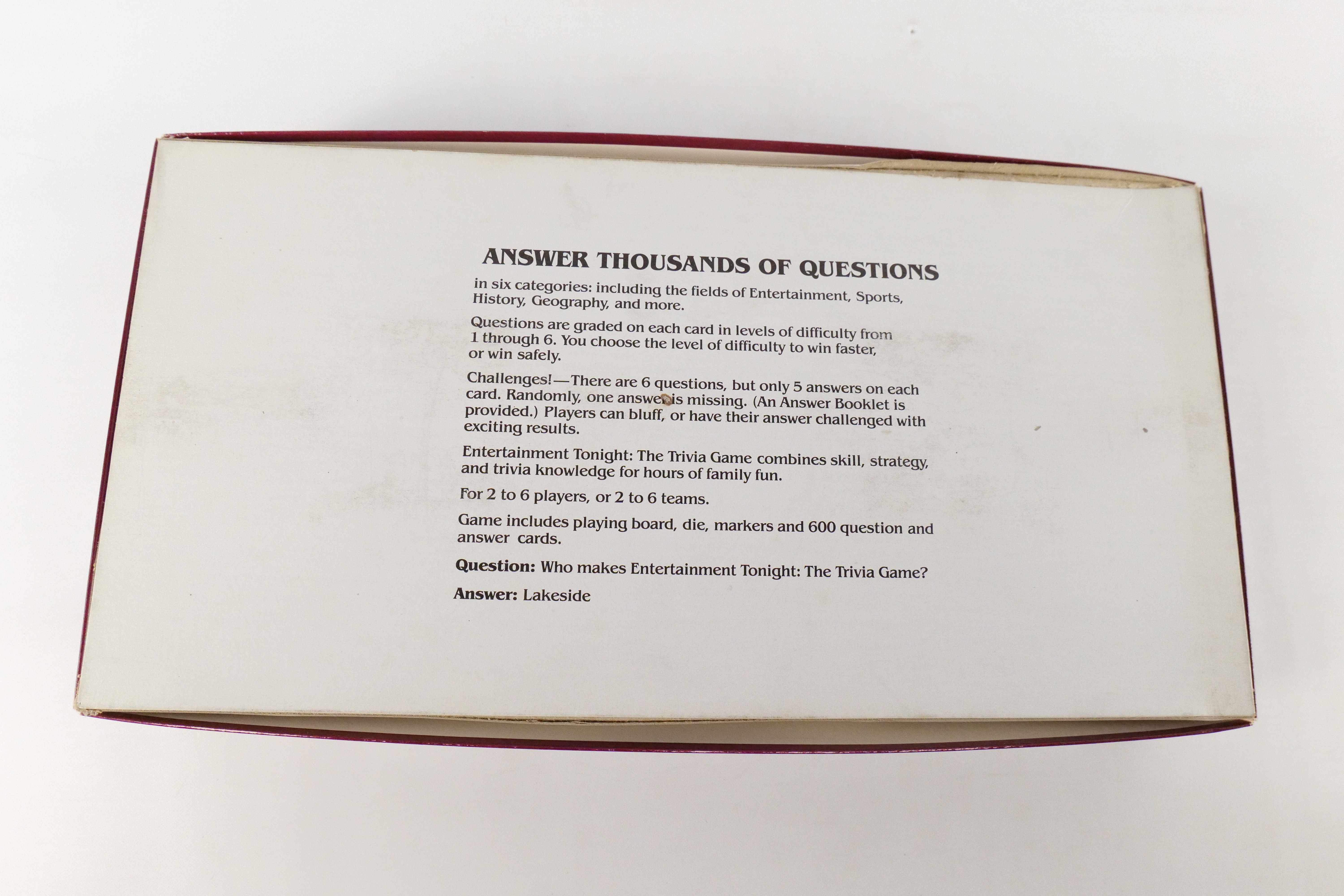 Lot of 2 Board Games. Including Trump The Game and Entertainment Tonight. Both look to be complete but please refer to photos for included pieces. All invoices must be paid within 24 hours of the sale. We offer multiple shipping options please read the shipping terms to understand your options. We also offer Pick-Ups Friday, Saturday, and Monday immediately following the sale. BY APPOINTMENT ONLY.