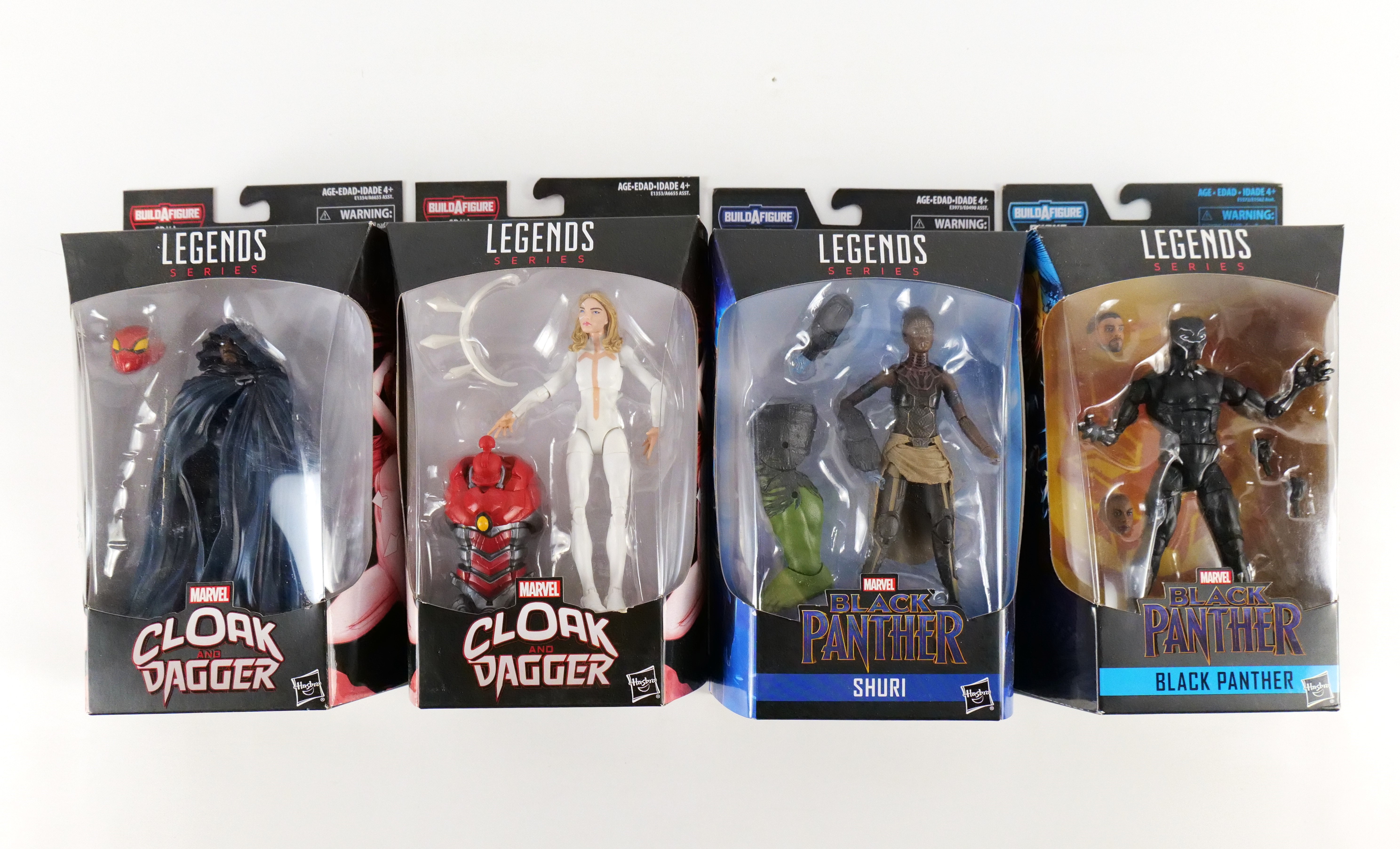 Lot of 4 Marvel Legends Action Figures. Including Cloak and Dagger BAF SP//dr, Black Panther BAF Okoye and Shuri BAF Hulk. All new in package. All invoices must be paid within 24 hours of the sale. We offer multiple shipping options please read the shipping terms to understand your options. We also offer Pick-Ups Friday, Saturday, and Monday immediately following the sale. BY APPOINTMENT ONLY.