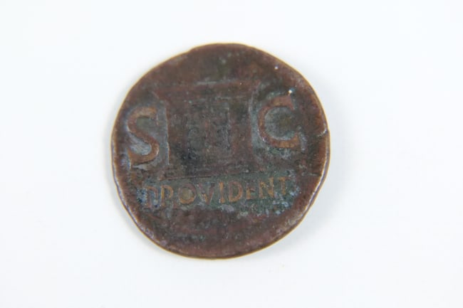 Group of 2 bronze ancient coins including an AE Dupondius – Divus Augustus Caesar. Head of Augustus left/S-C either side of large altar. 22 – 30 CE. Weighs approx. 10.46 g. Also included is a AE Vespasian. Felicitas wearing long dress, standing left holding cornucpiae in left hand, caduceus in right. Roman Empire, 69 – 79 CE. Weighs approx. 9.97 g. All invoices must be paid within 24 hours of the sale. We offer multiple shipping options, please read the shipping terms to understand your options. We also offer Pick-Ups Friday, Saturday, and Monday immediately following the sale. BY APPOINTMENT ONLY.