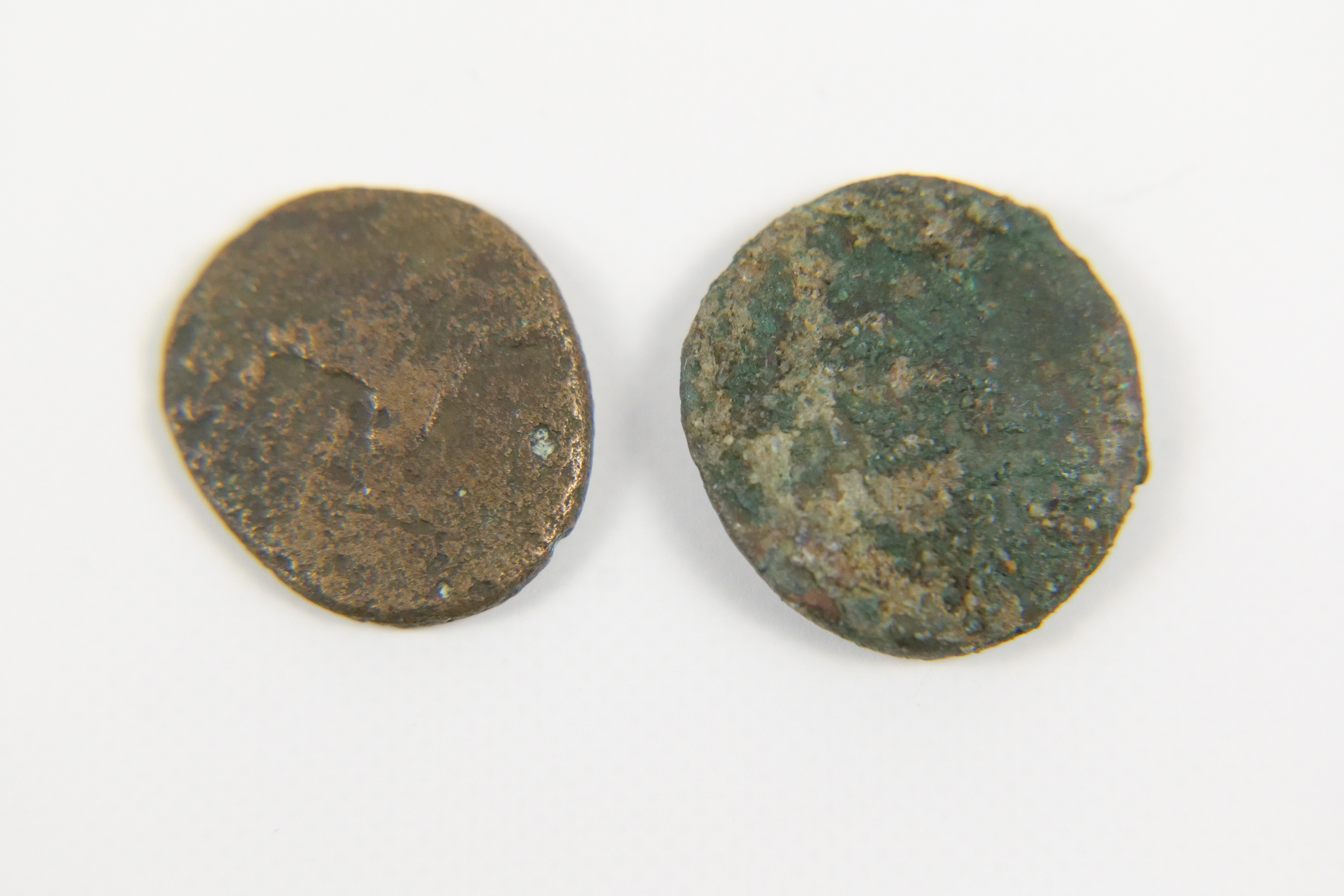 Group of 10 bronze unidentified ancient coins. All in varying conditions but were unable to be determined. All invoices must be paid within 24 hours of the sale. We offer multiple shipping options, please read the shipping terms to understand your options. We also offer Pick-Ups Friday, Saturday, and Monday immediately following the sale. BY APPOINTMENT ONLY.