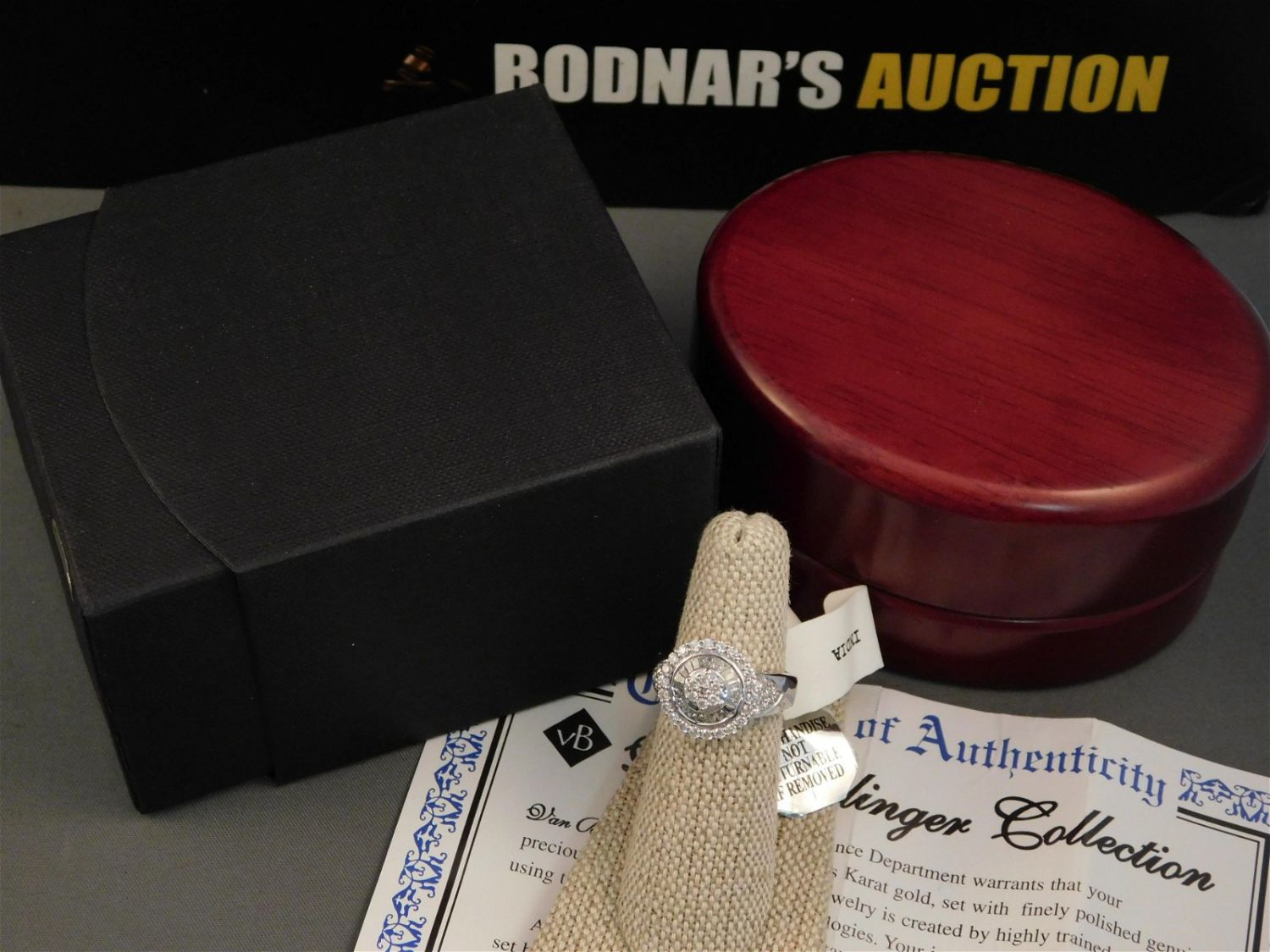 Van Belinger Collection 14K White Gold Ladies Ring with Round and Baguette Cut Diamonds in Circular Pattern. Comes with box, outer box, paperwork and tag. Inner Box has some damage to cushion. Size 6. All items must be paid for within 24 hours of the sale. All items are shipped USPS or UPS and will be billed separately. A $12 handling fee is added to the shipping price per lot if shipped in house. Some items or large quantity of purchases will be packed and shipped via the UPS store. Local pickups are at our South Brunswick location on Friday, Saturday and Monday ONLY! All pickups are by appointment only. Any condition issues will be listed in the description. Please read the terms for full information.