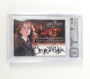 The sale then moves into Harry Potter! From the collection of Lisa Singer comes a complete set of 2004 Artbox Harry Potter and The Prisoner of Azkaban cards including the rare Emma Watson signature card estimated at $3000.00-$5000.00. Lisa Singer worked at Warner Bros. from December 2001 through winter 2004 as the Project Manager, Text & Verbiage, in Warner Bros. Consumer Products. In this role, she wrote licensed product copy and oversaw a team of writers and coordinators responsible for brand language across Harry Potter consumer products, including video games greeting cards and games. She is credited as a writer on the first three Harry Potter video games. All copy and brand language produced by her team was submitted directly to J.K. Rowling for approval, placing her at the center of the franchise’s early global merchandising expansion during the original film releases. The cards offered come from her personal collection and are supported by original studio-era documentation and credentials from her time at Warner Bros. Following her work on Harry Potter, Singer went on to build a career as a writer, director, and producer in unscripted television. They were given as a gift directly from Warner Bros and Art Box. To find out more about this collection listen to this week’s new podcast on Bodnar’s Bids & Banter.